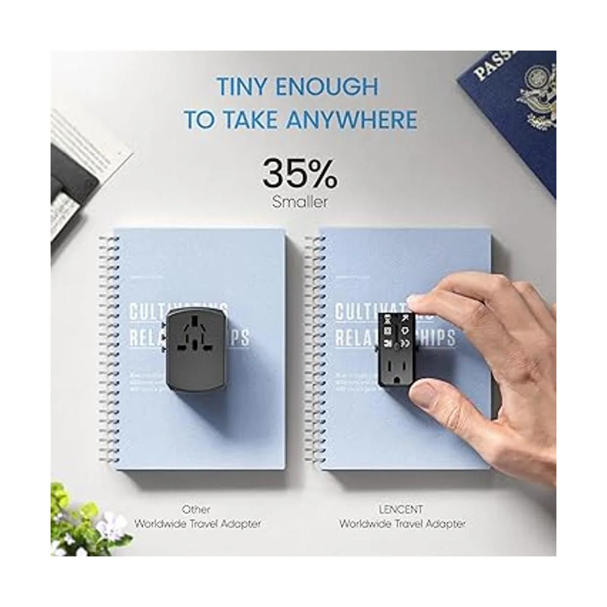 Compacto y portátil: este adaptador de viaje con tamaño súper mini de 1.86 x 1.29 x 1.71 pulgadas, lo que te ayuda a ahorrar espacio en tu equipaje y es un gran compañero de viaje para tu viaje. Es un 35 más pequeño que otros adaptadores de viaje mundiales para que puedas ponerlo en tu bolsillo fácilmente. No hay necesidad de tomar adaptador de corriente adicional mientras viajas.