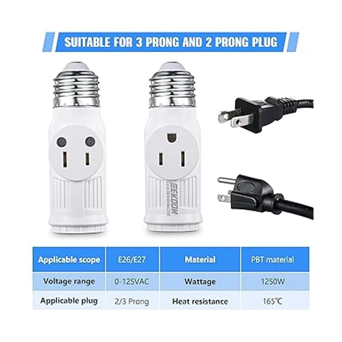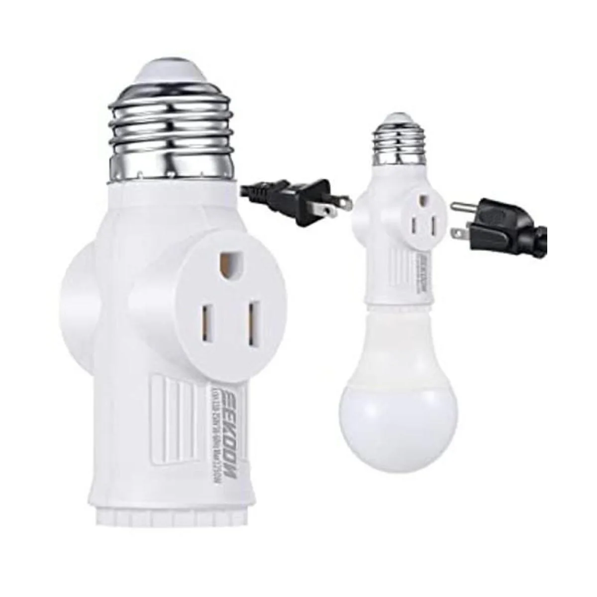 Adaptador de enchufe de luz de 3 puntas, adaptador de salida de bombilla E26, adaptador de enchufe de luz polarizada a enchufe, bombilla blanca a enchufe de 23 clavijas, convertidor divisor para garaje, porche, cámara CCTV 1 pieza