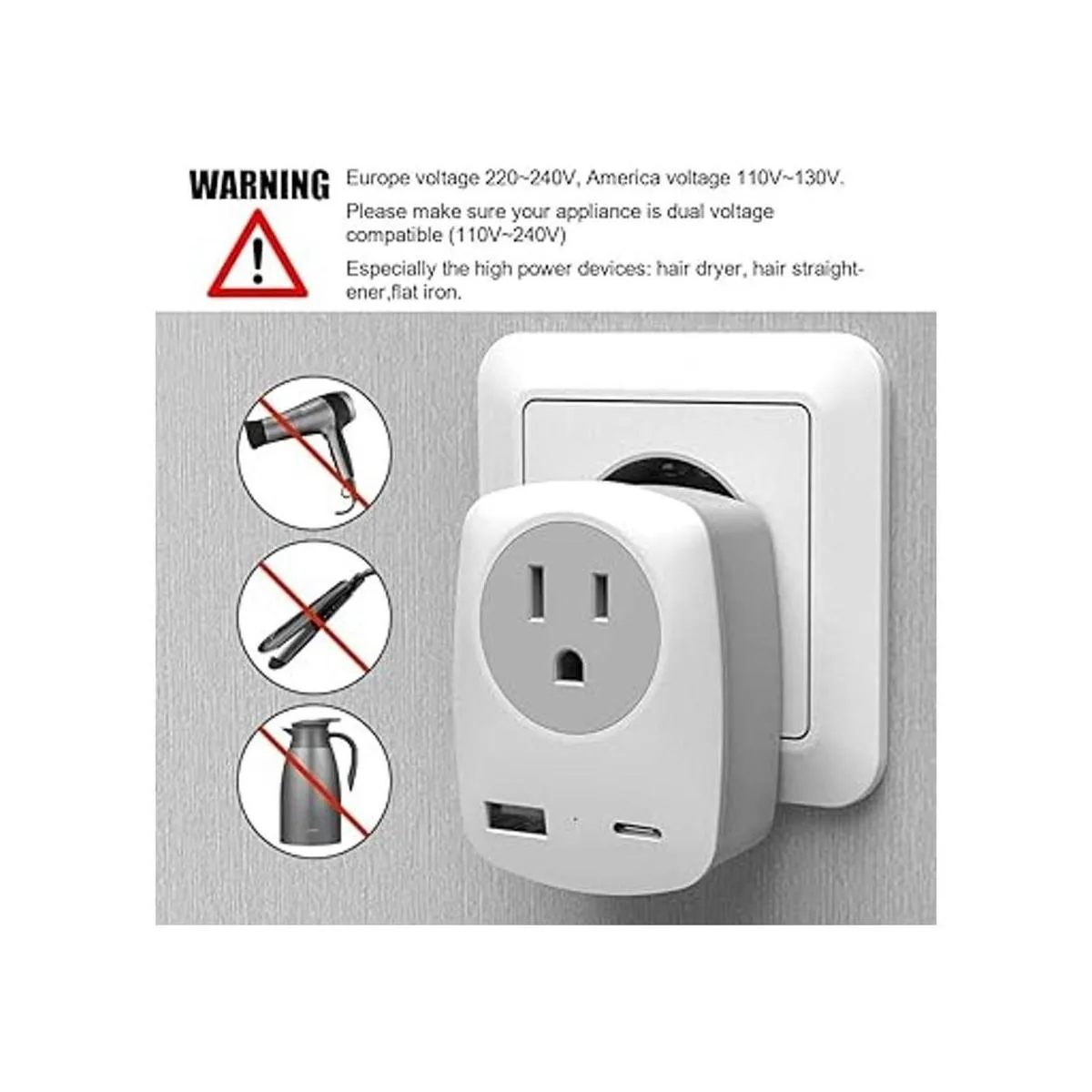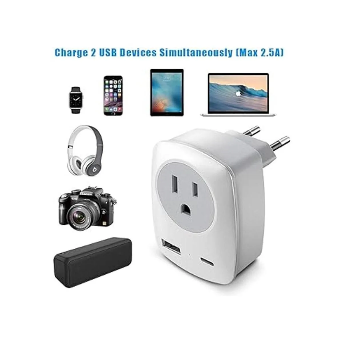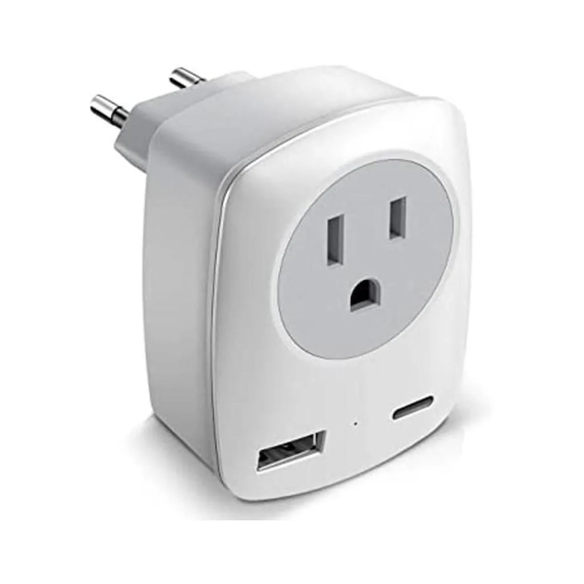 Un adaptador sustituye a 3 cargadores Este adaptador de enchufe europeo combina 1 puerto USBA, puerto I USBC y 1 toma de corriente de EE. UU. juntos, te permite cargar 3 dispositivos electrónicos simultáneamente, como iPhone, iPad, teléfonos inteligentes, banco de energía, cámara, auriculares, Kindle, laptop y mucho más