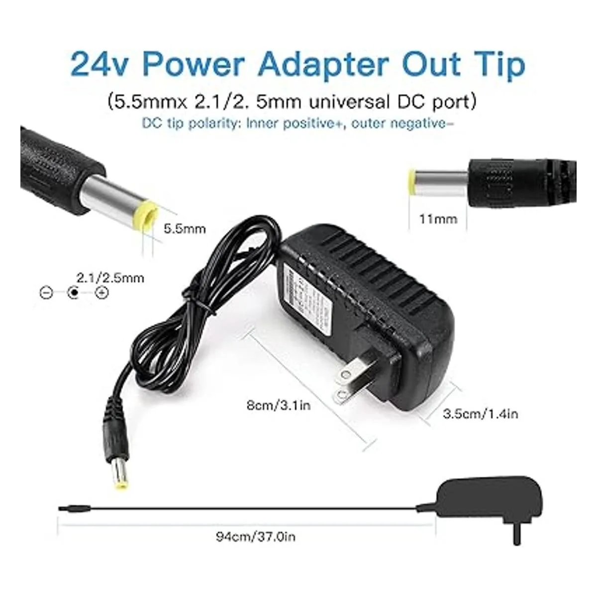 Amplia compatibilidad: este adaptador de corriente de 24 V y 1 amplificador ajustará automáticamente la corriente de salida 1000 mA máx. en consecuencia a diferentes dispositivos, como 200 mA, 300 mA, 500 mA, 600 mA, 650 mA, 700 mA, 800 mA, 1 A.