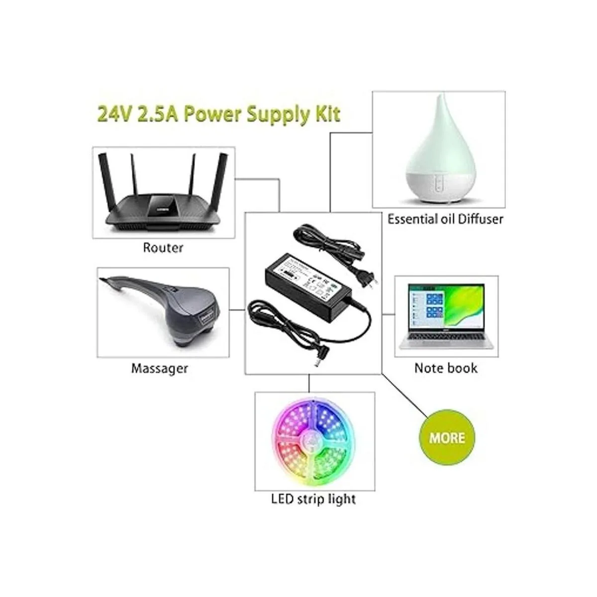 Adaptador de fuente de alimentación de 24 V 2.5 A 110 V240 V CA a CC 24 voltios 60 W cable de alimentación para ruedas Logitech Racing, tiras LED, monitor LCD, cámara CCTV