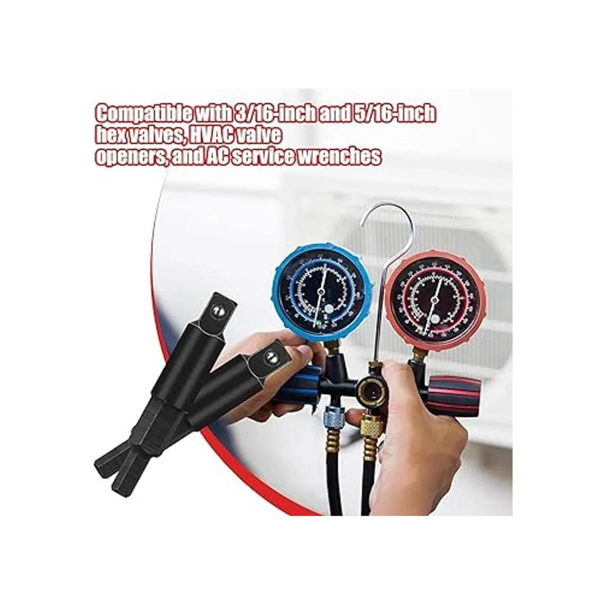 Compatibilidad: la llave de servicio de aire acondicionado es compatible con válvulas hexagonales de 3/16 pulgadas y 5/16 pulgadas, abridores de válvulas HVAC y llaves de servicio de CA, práctica en el uso diario