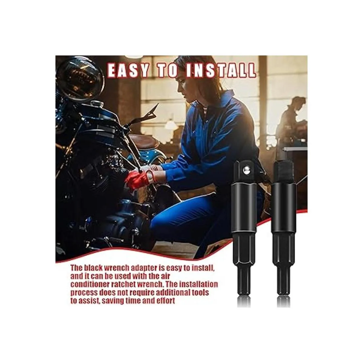 Fácil de instalar: este adaptador de llave negra es fácil de instalar y se puede aplicar con llaves de carraca de aire acondicionado, no necesita herramientas adicionales, lo que ahorra tiempo y esfuerzo