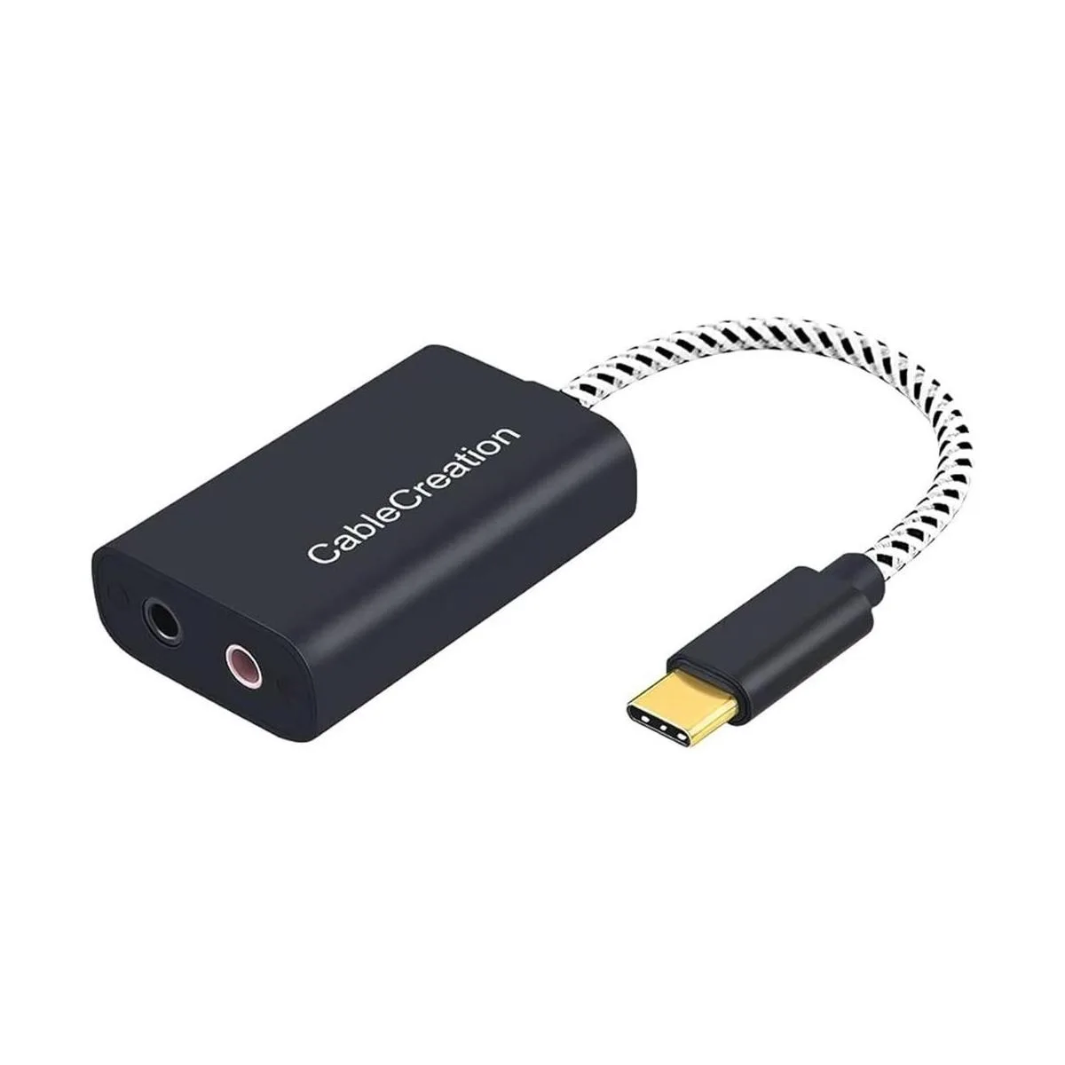 Adaptador de micrófono USBC, CableCreation tipo C, tarjeta de sonido estéreo externa con conector de audio de 0.138 in compatible con Windows, MacBook Pro, iPad Pro 2020, S20 S21 Ultra, Note 9 10, negro