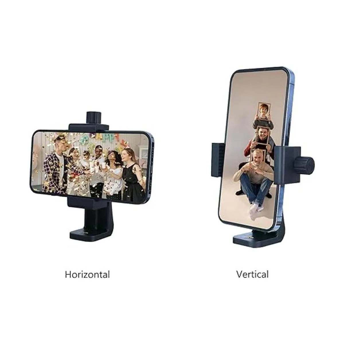 Adaptador de montaje en trípode para teléfono y control remoto para teléfono inteligente, clip de soporte para teléfono inteligente Ruittos compatible con iPhone Samsung y todos los teléfonos celulares, gira la abrazadera vertical horizontal ajustable