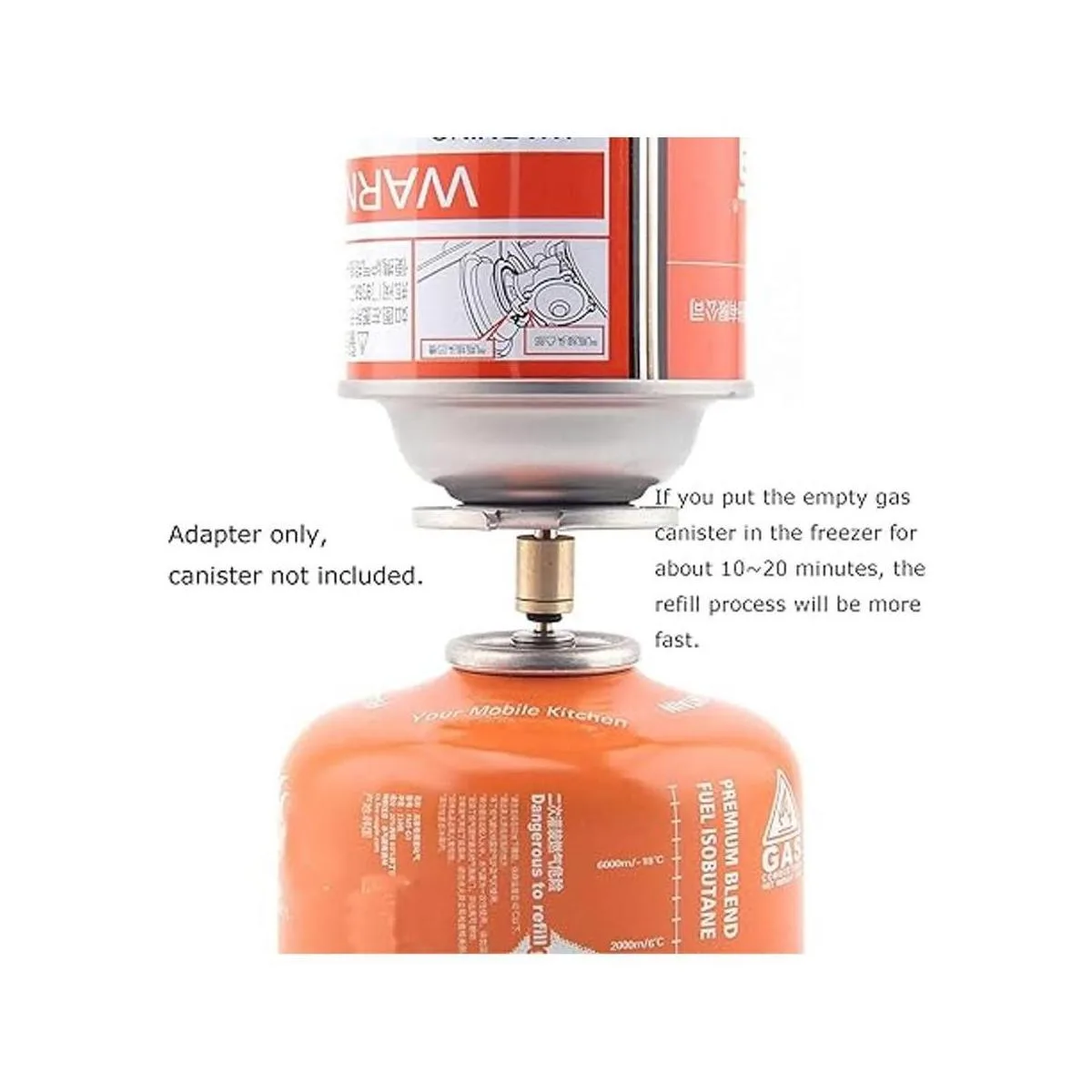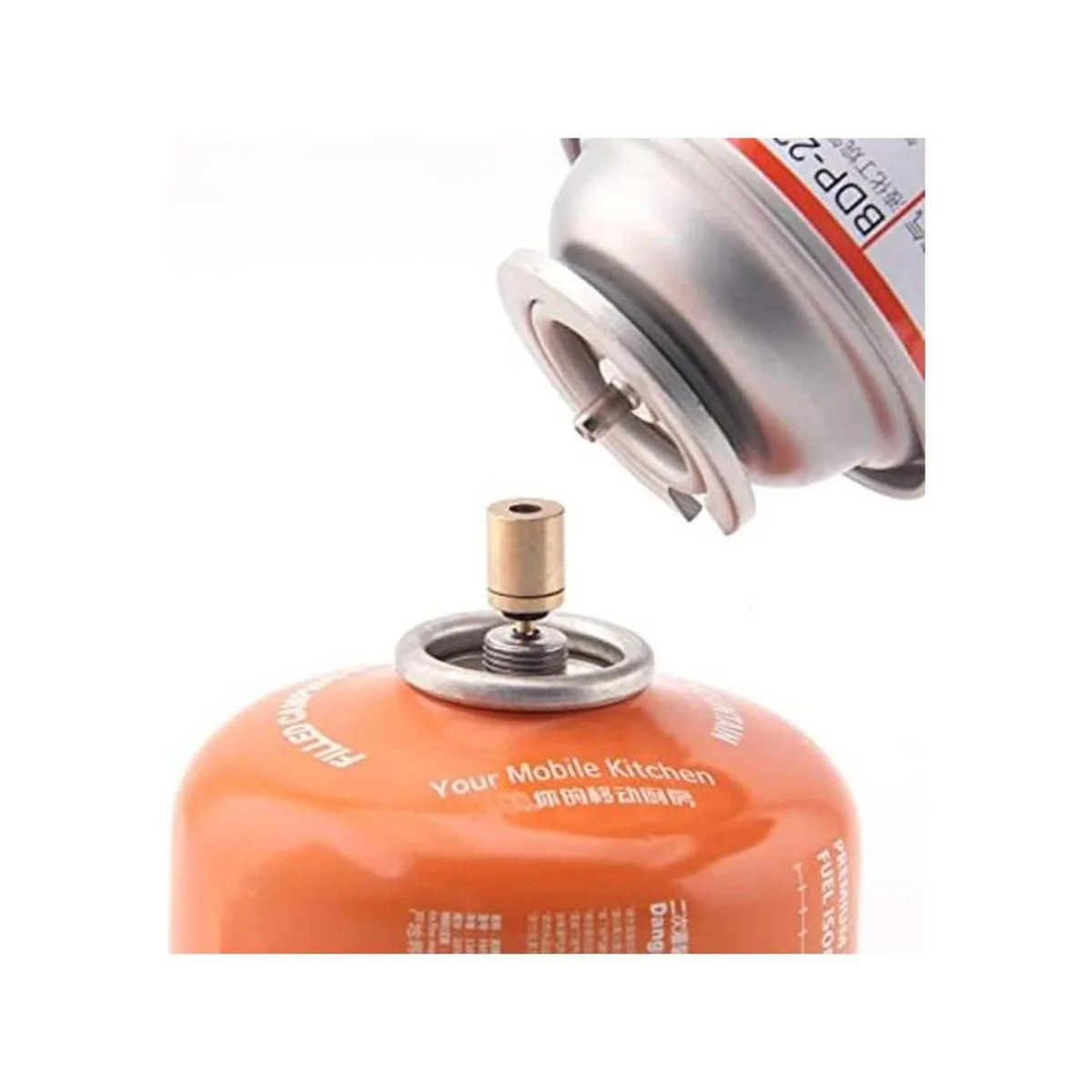 Tamaño compacto. Peso: solo 0.24 oz. Altura: 0.669 in. Diámetro: 0.394 in. Con tan tamaño portátil, es muy conveniente para llevar cuando vas de senderismo y camping. El paquete incluye 1 adaptador de recarga de gas solamente. El bidón de gas no está incluido.
