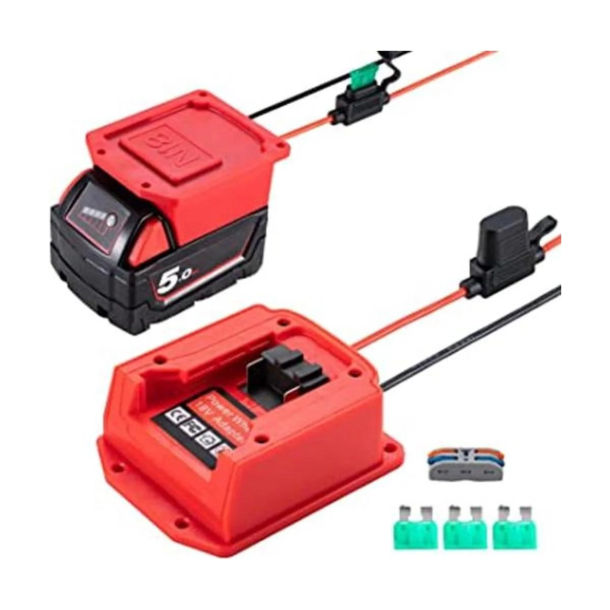 Adaptador de rueda de alimentación para Milwaukee 18 V batería de litio adaptador seguro con fusible y terminal de alambre, convertidor de potencia de alambre de calibre 14 para camiones RC DIY, juguetes RC, robótica, luces de trabajo