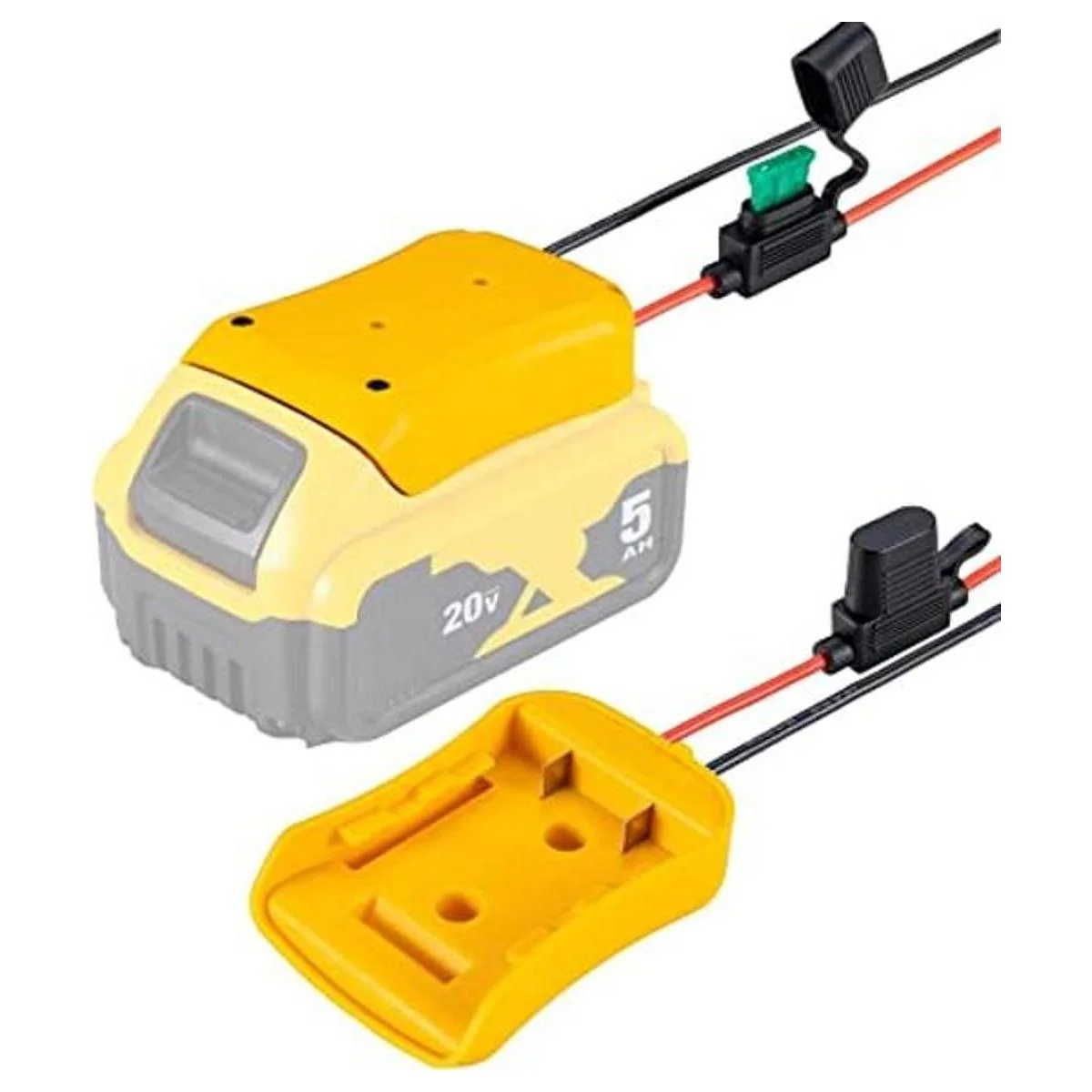 Adaptador de rueda eléctrica para batería Dewalt de 20 V con fusible y terminales de cable, funciona con batería de litio Dewalt de 20 V DCB205 DCB206 DCB200; conector de alimentación para automóvil RC, robótica, camión RC, uso de bricolaje