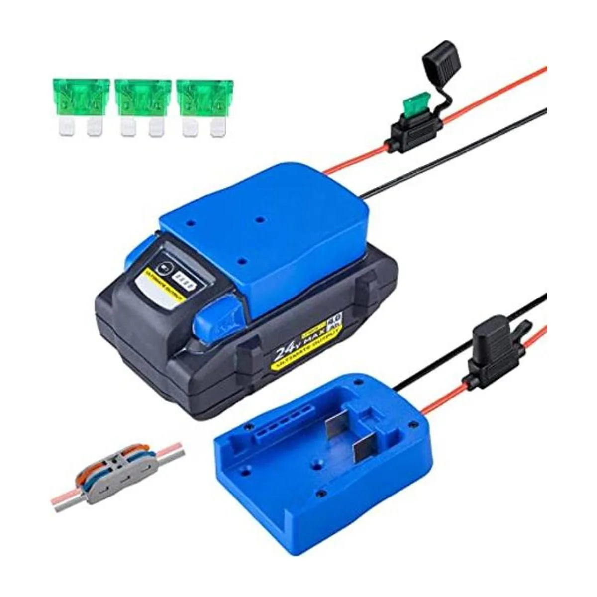 Adaptador de rueda eléctrica para batería Kobalt de 24 V Max con fusible y terminales de cable, conector de alimentación para coche RC, robótica de calibre 14, camión RC, uso de bricolaje, funciona para batería KB62403 KB52403 KB42403 KB22403