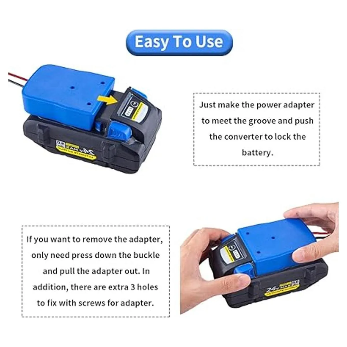 Perfectamente compatible: funciona con baterías de iones de litio Kobalt 24 V max KB62403 KB52403 KB42403 KB22403. Fácil de instalar, se bloquea muy bien en la batería.