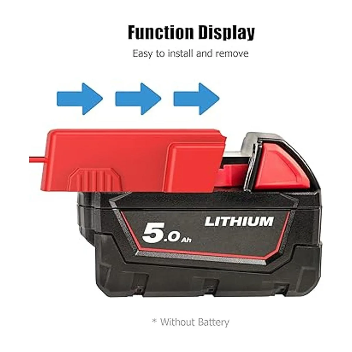 Compatible con la batería de iones de litio Milwaukee M18 de 18 voltios 48111815, 48111850, 48111820, 48111840, 48111815 y más. Fácil de instalar, desliza suavemente la batería y bloquea de forma segura con 3 agujeros de montaje.
