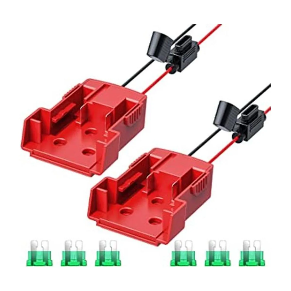 Adaptador de ruedas eléctricas para Milwaukee, paquete de 2 unidades M18 de 18 V, kit de conversión de batería, cable de 12 AWG con portafusibles y 6 fusibles de 30 amperios, UIInosoo para bricolaje, juguetes RC y robótica, rojo