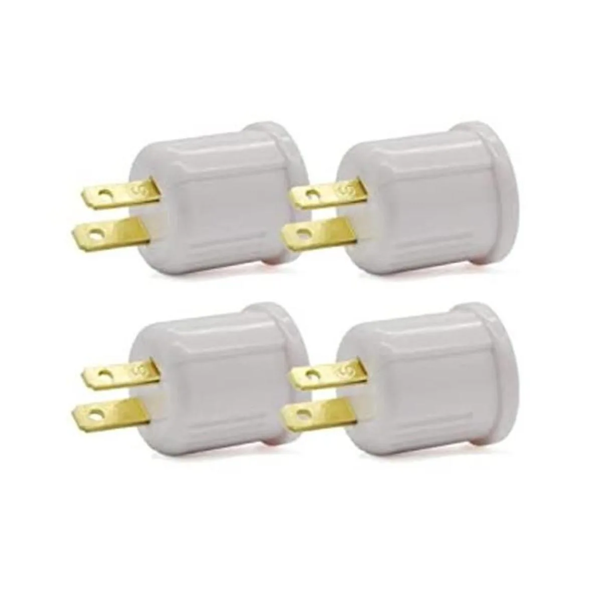 Adaptador de salida a enchufe, enchufe de luz enchufable, convertir salida en enchufe de bombilla, salida polarizada de 2 clavijas a enchufe de bombilla E26 E27, 660 vatios, 125 voltios, certificación UL paquete de 4