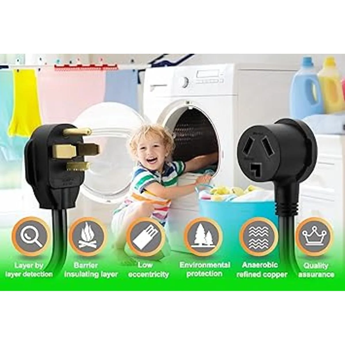 Alta calidad Comprar una nueva secadora Contratas a un electricista No tienes que contratar a un electricista para desmontar tu secadora para tener el cable recableado, ni tienes que comprar una nueva secadora de ropa eléctrica. Tienes que hacer es conectarlo, perfectamente simple. Cable de alimentación para secadora de 10 AWG hecho de cobre con aprobado UL para cable de PVC en UL 62 estándar soporte máximo 30 amperios.