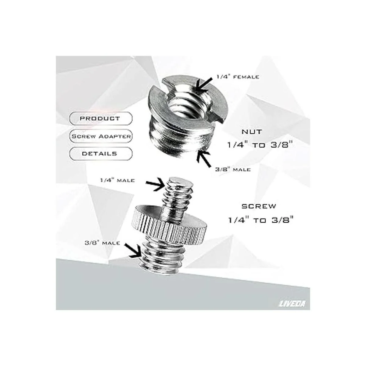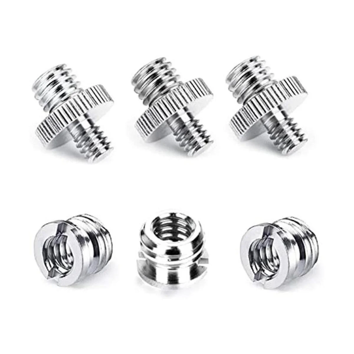 El adaptador de tornillo de trípode, adaptadores de tornillo macho de 1/4 pulgadas a macho de 3/8 pulgadas 3 piezas y adaptador de tornillo de tuerca de 1/4 a 3/8 pulgadas 3 piezas. Tamaño estándar, calidad fiable y fácil de conectar y usar.
