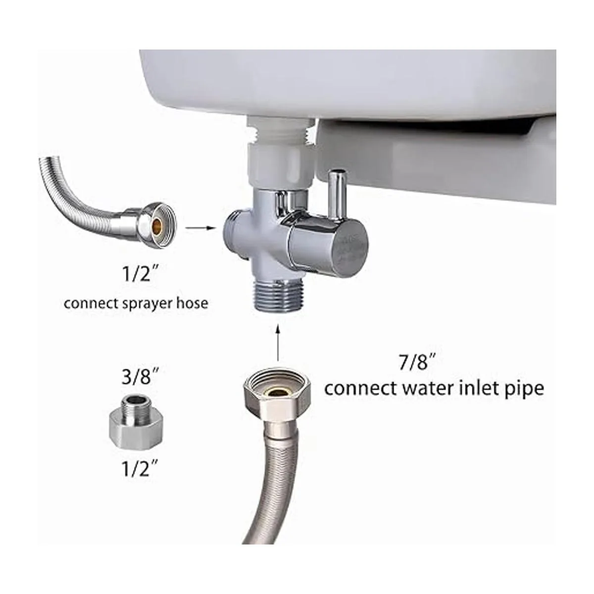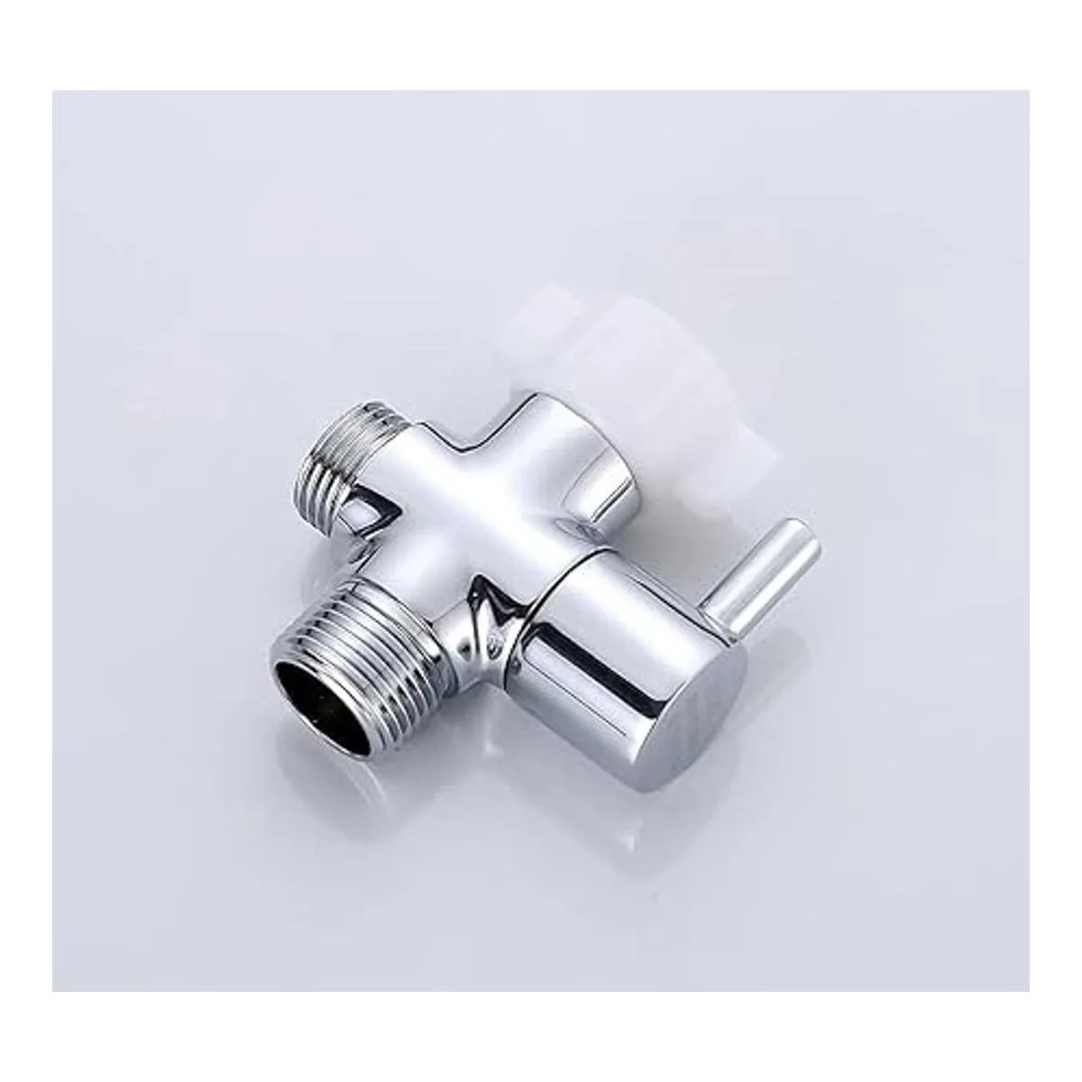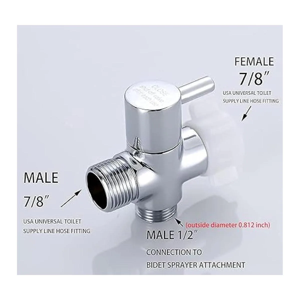 Adaptador en T con válvula de apagado, adaptador en T de 3 vías de latón metálico para bidé de inodoro de mano, cromo de 78 x 78 x 12 pulgadas o 38 pulgadas