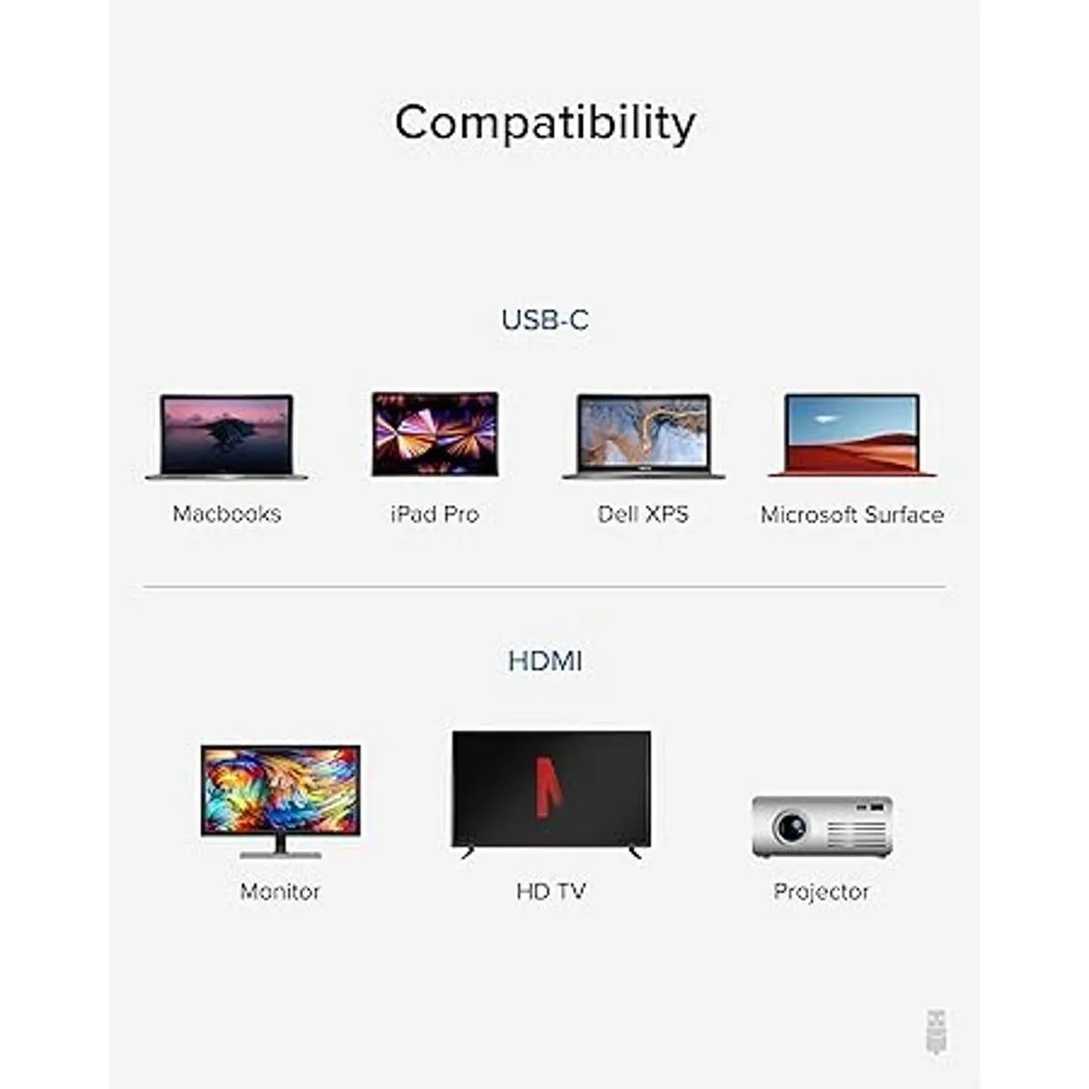 Compatibility HDMI to USB C adapter works with iPad Pro, modern Mac computers, Dell XPS, Microsoft Surface tablets and laptops, and other systems with Thunderbolt 3, Thunderbolt 4, or USB4 ports which support DisplayPort Alternate Mode over USBC