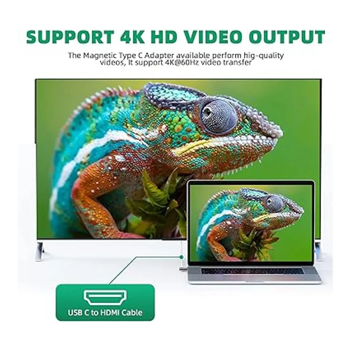 10 Gbps y video 4K: con 24 pines completos chapados en oro, el adaptador magnético DuHeSin cumple con las especificaciones de potencia y las tasas de transferencia de datos de USB C 3.1 Gen2, soporta una velocidad de transmisión de datos de 10 GB. Con cable USB 3.1, el adaptador USB magnético de 24 pines soporta salida de video y audio HD 4K a 60Hz.