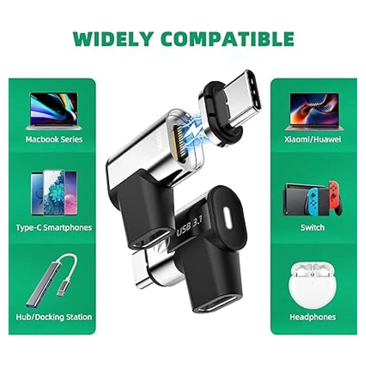 Adaptador magnético USB C, paquete de 2 adaptador magnético USB C, 24 pines, USB 3.1 de 10 Gbps, transferencia de datos 4K 60 Hz, video PD 100 W, carga compatible con MacBook ProAir USBC Laptop