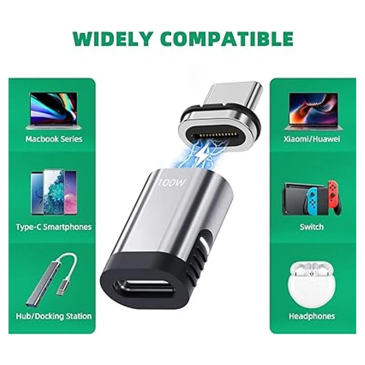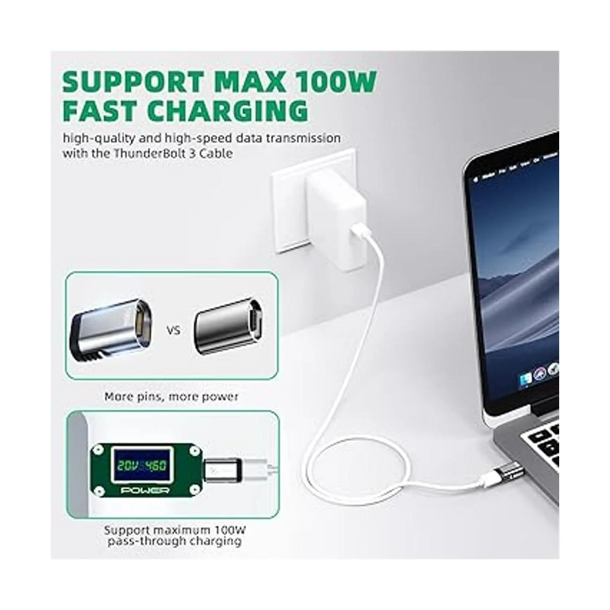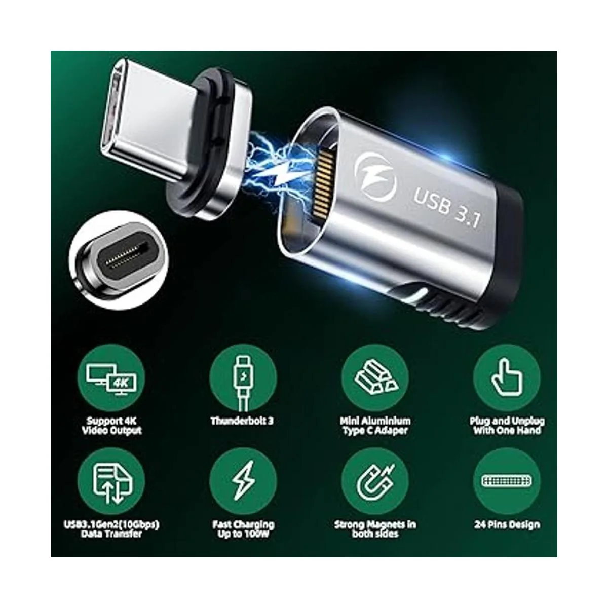 Adaptador magnético USB C, paquete de 2 unidades, adaptador magnético USB C de 24 pines, recto con carga PD de 100 W, USB 3.1, transferencia de datos de 10 Gbps, video 4K 60 Hz para Thunderbolt 3 MacBook ProAir y más dispositivos tipo C
