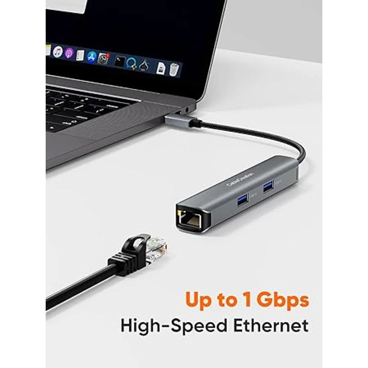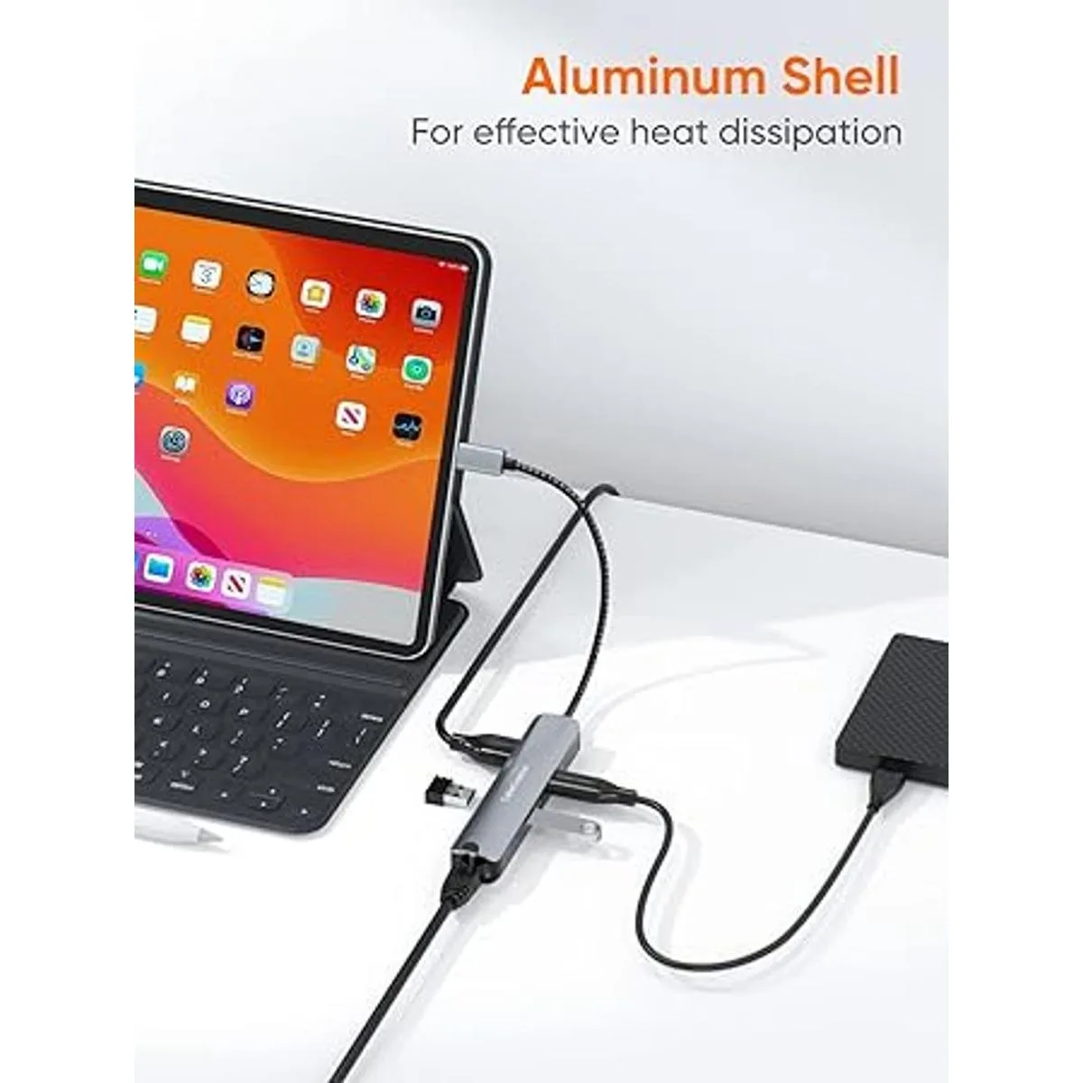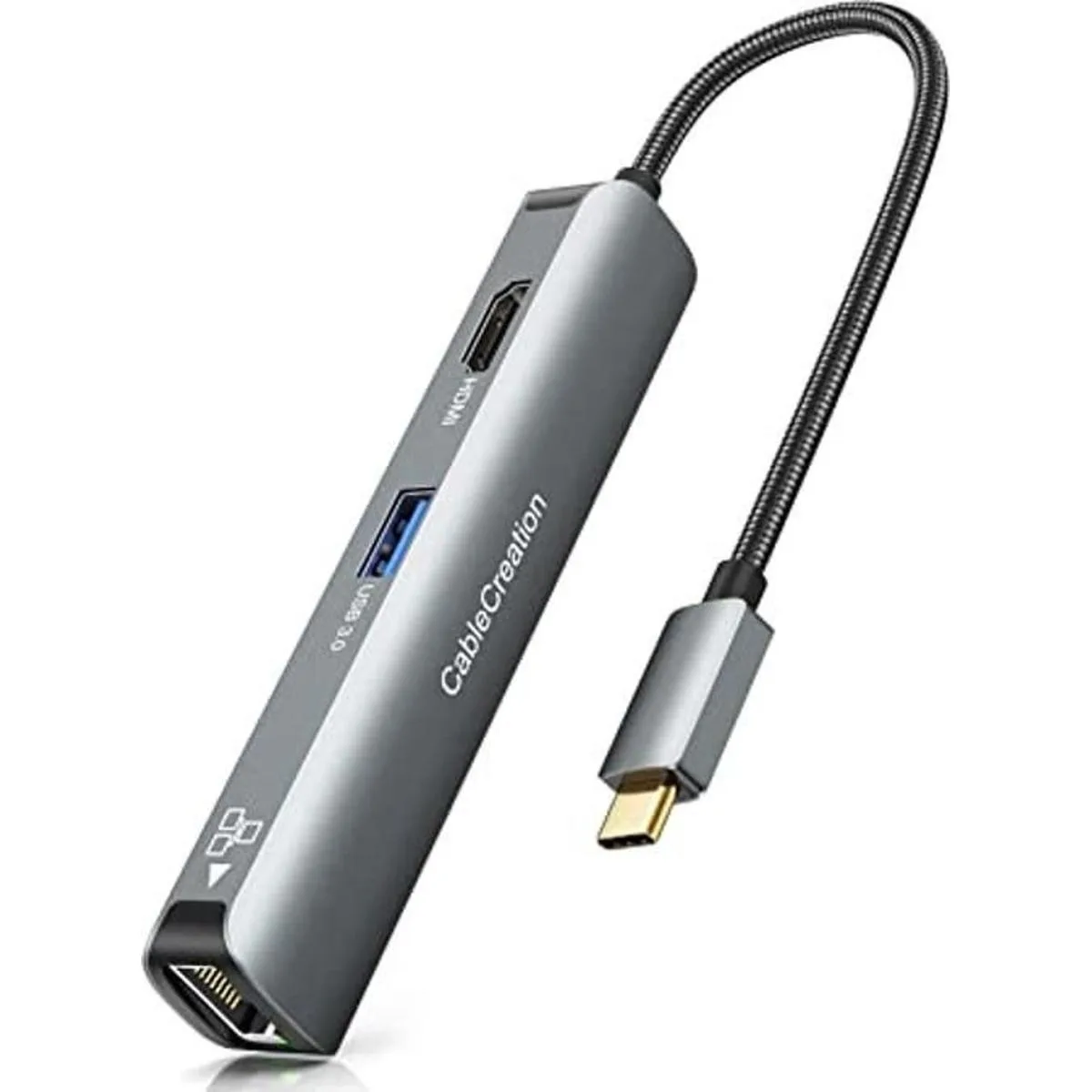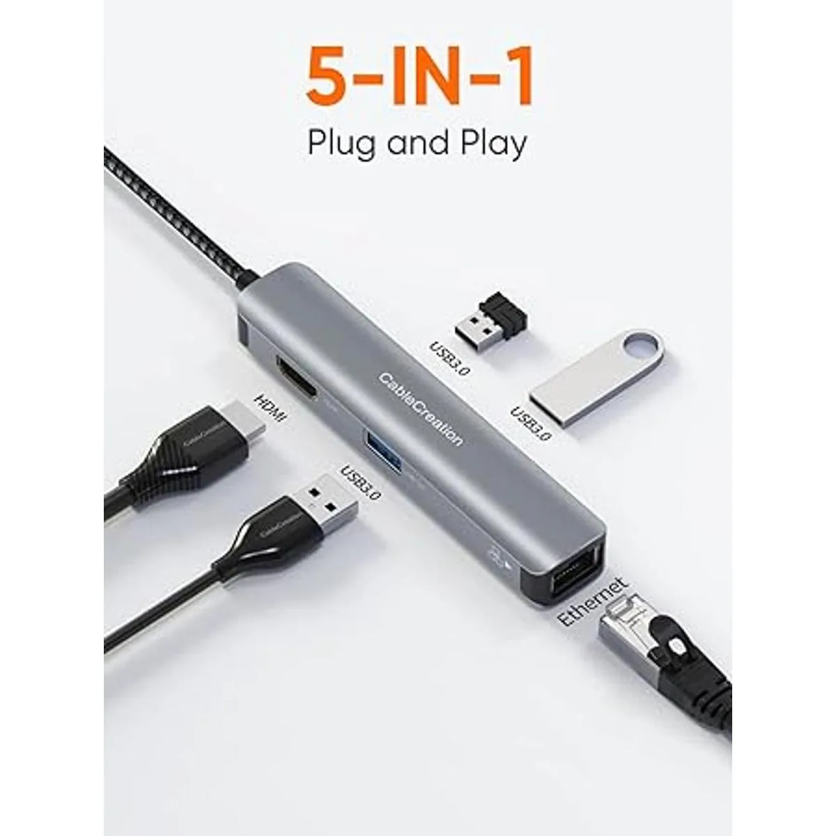 Adaptador multipuerto USB C concentrador, CableCreation 5 en 1 adaptador USB C carcasa de aluminio con HDMI 4K, Ethernet de 1 Gbps, 3 puertos USB 3.0 para MacBook ProAir 20202019, iPad Pro 2020, Surface Go, XPS