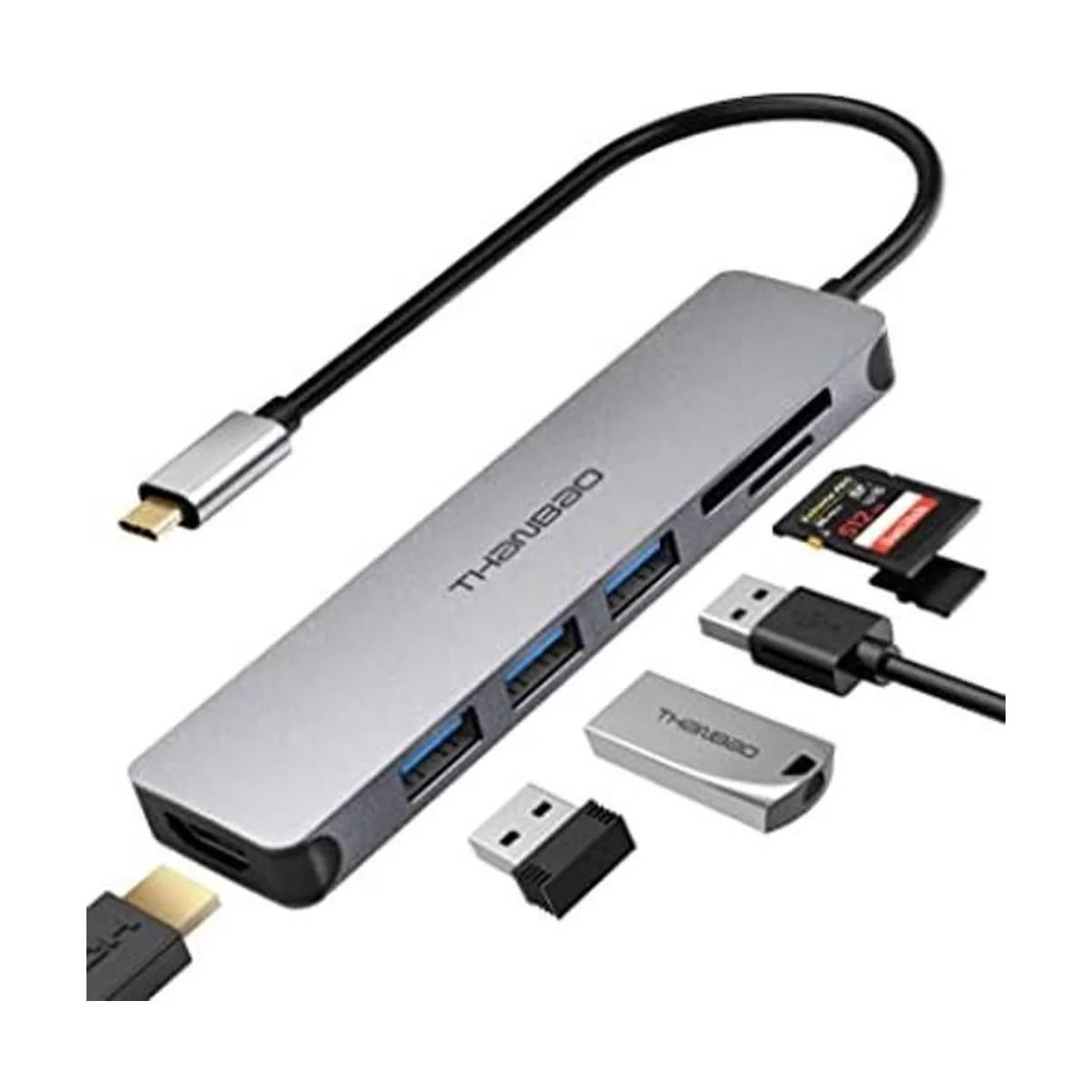 Diseño 7 en 1 y expansión masiva: 3 puertos USB estándar con velocidad de transferencia de 5 Gbps que garantiza una sincronización rápida y compartir archivos, 1 puerto HDMI con salida de video 4K vívida que transfiere medios en segundos con efecto 3D, 2 ranuras para tarjetas SD una Micro SD para una versatilidad superior de almacenamiento de datos, y un conector de carga USB C que hace que el adaptador USB C sea posible conectar cualquier dispositivo con puertos USB C todas las posibilidades en uno Buje.