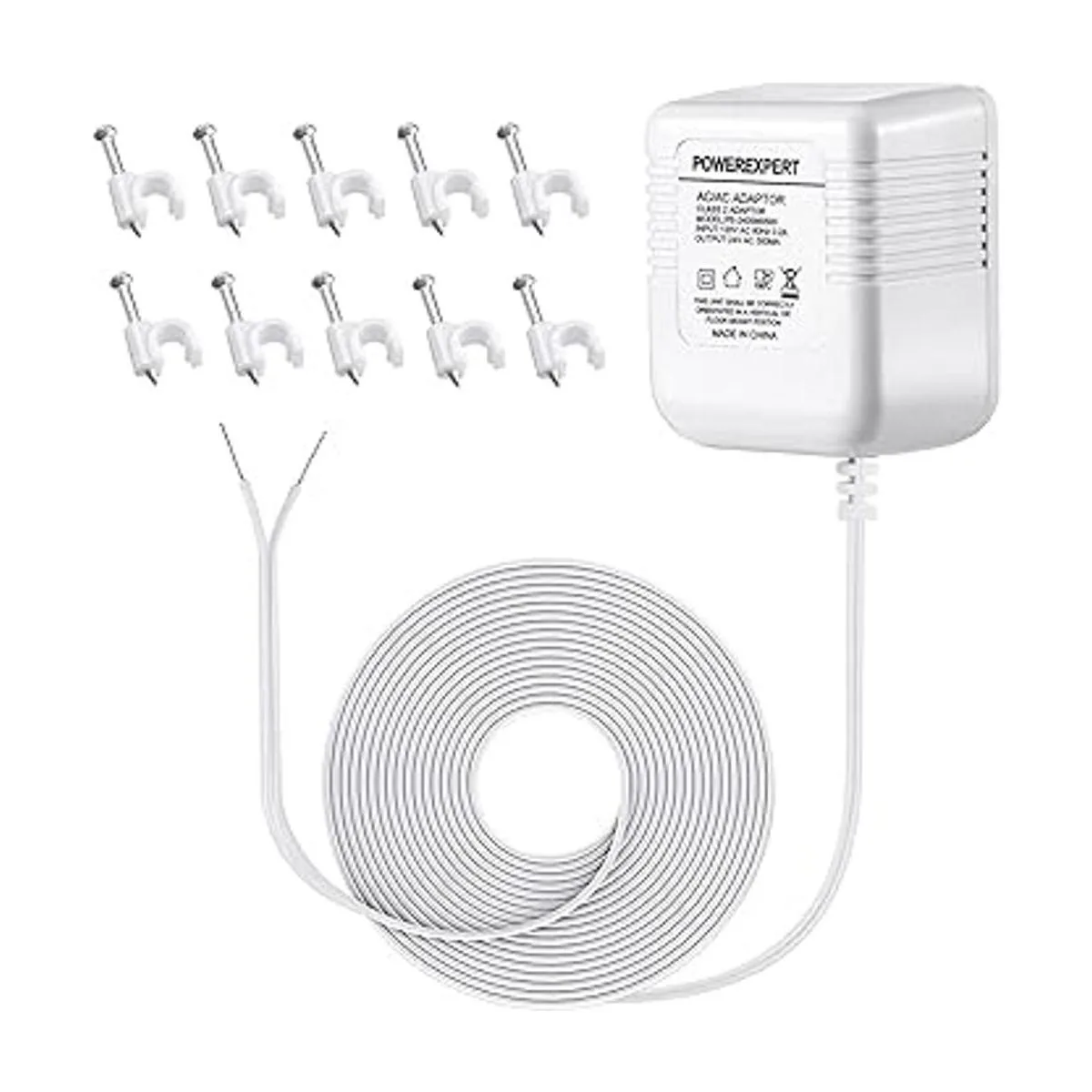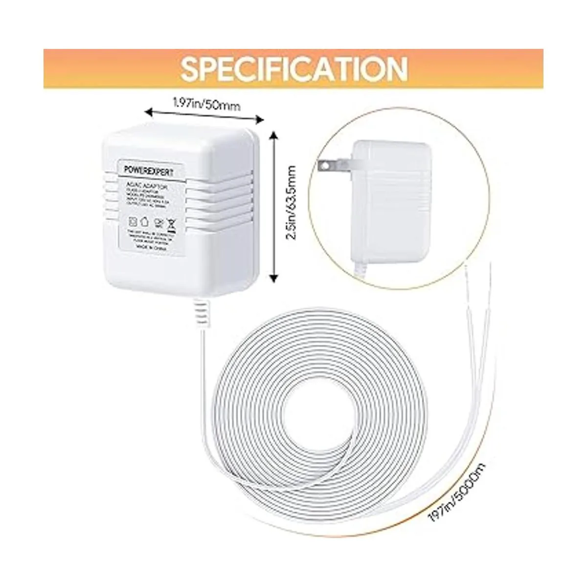 Adaptador transformador de timbre de 24 V para timbre de video de anillo, fuente de alimentación de cable C de 16.4 pies de largo, compatible con timbres de video anillo, Nest Hello, Wyze y Eufy