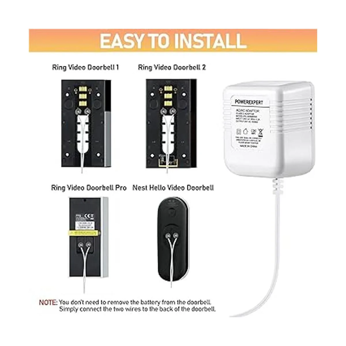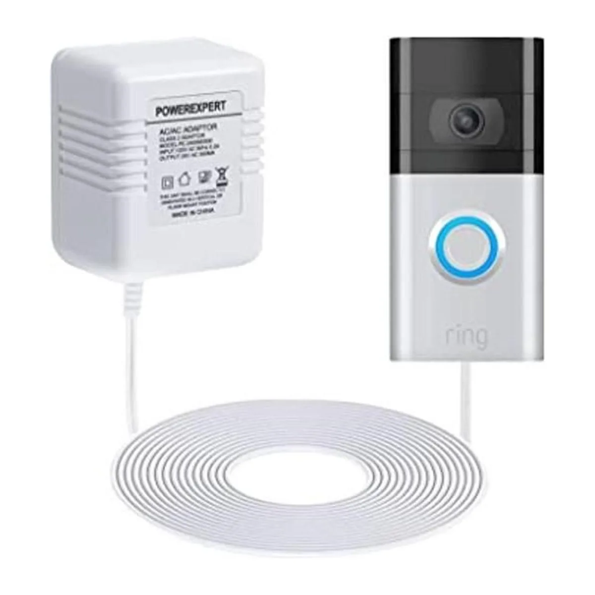 Amplia compatibilidad: el cable de alimentación universal de 24 V alimenta los timbres inteligentes populares. Compatible con timbre de video Ring versión 2020, 3/4/Plus y Pro 1/2, Nest, Eufy, Skybell, Arlo, etc. Convierte continuamente 110/120 V a 24 voltios 500 ma.