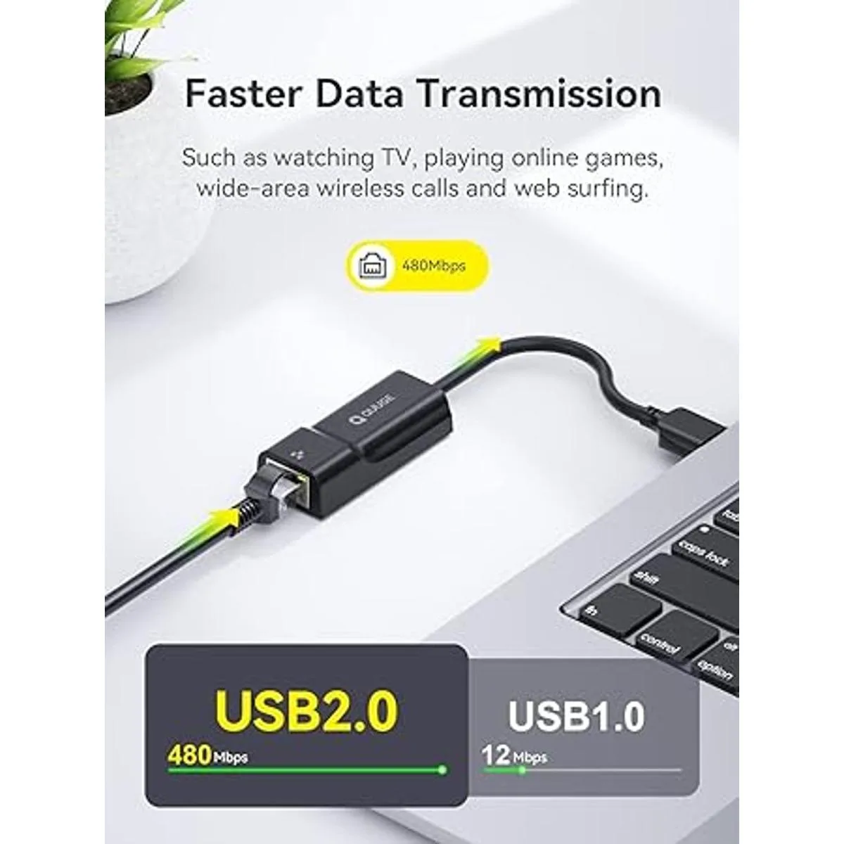 Velocidad rápida de 100 Mbps: el adaptador USB 2.0 a Ethernet soporta velocidades de red rápidas de hasta 100 Mbps, añadiendo una conexión de red con cable estable a tu laptop MacBook MAC OS, Nintendo Switch o Raspberry Pi, placa base de PC, hasta 10 veces más rápido que las redes de 10 Mbps.