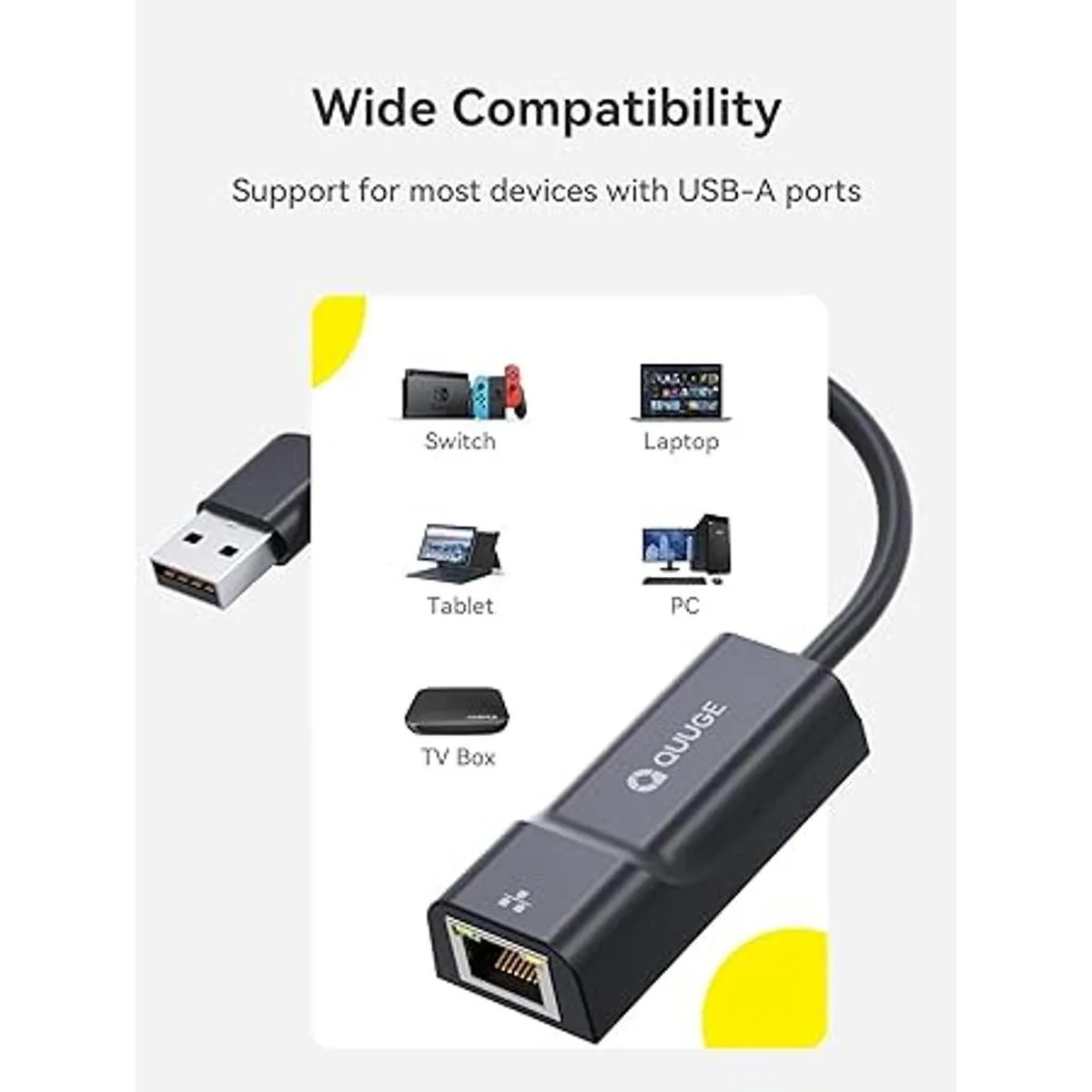 Amplia compatibilidad: el adaptador Ethernet USB A QUUGE es compatible con MacBook Air, MacBook Pro, Surface Book/Pro, MacBook, Chromebook, PS4, Nintendo Switch, WiiU, PC/Desk, portátiles, tabletas, Roku TV y otros dispositivos USB de puerto A. Funciona sin unidad en Mac OS, Windows 11/10/8.1/8/Vista, Linux, Chrome OS y más sistemas. Nota: el controlador necesita en Windows XP/7, que puedes instalar fácilmente con nuestras instrucciones
