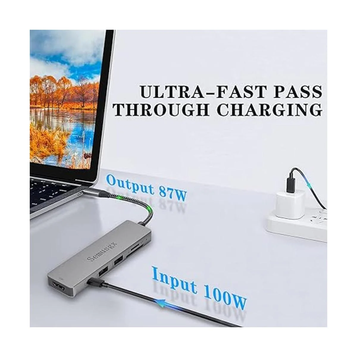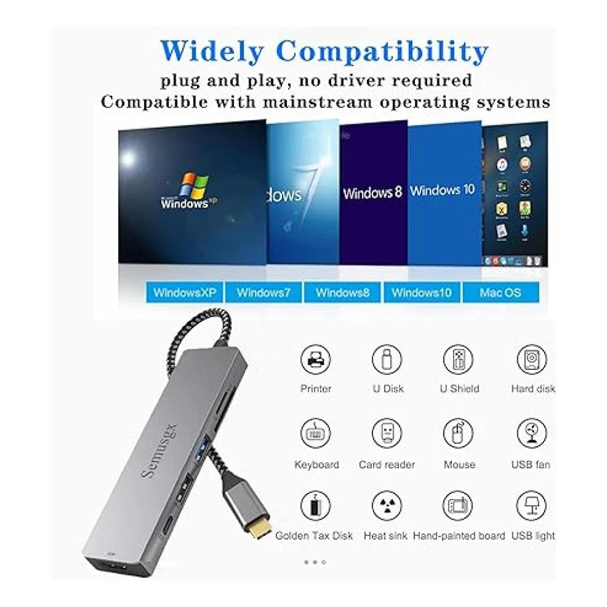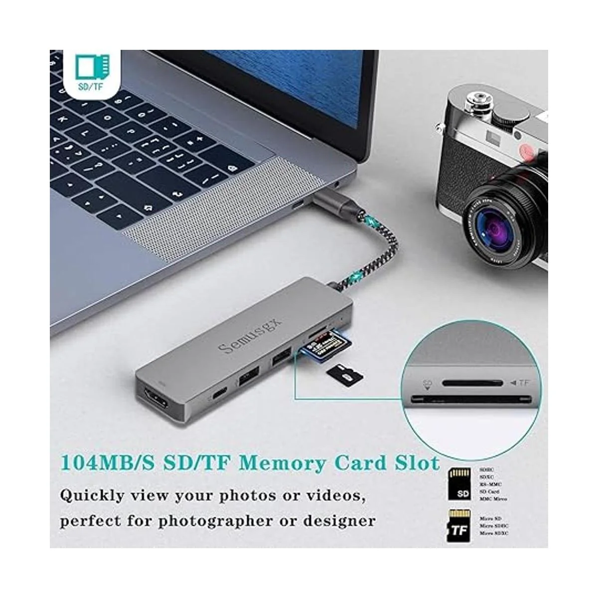 Adaptador USB C 6 en 1 tipo C Dongle USB C multipuerto adaptador de acoplamiento adecuado para MacBook Pro y más dispositivos tipo C HDMI 4K a 30Hz SDTF lector de tarjetas USB C 100W PD