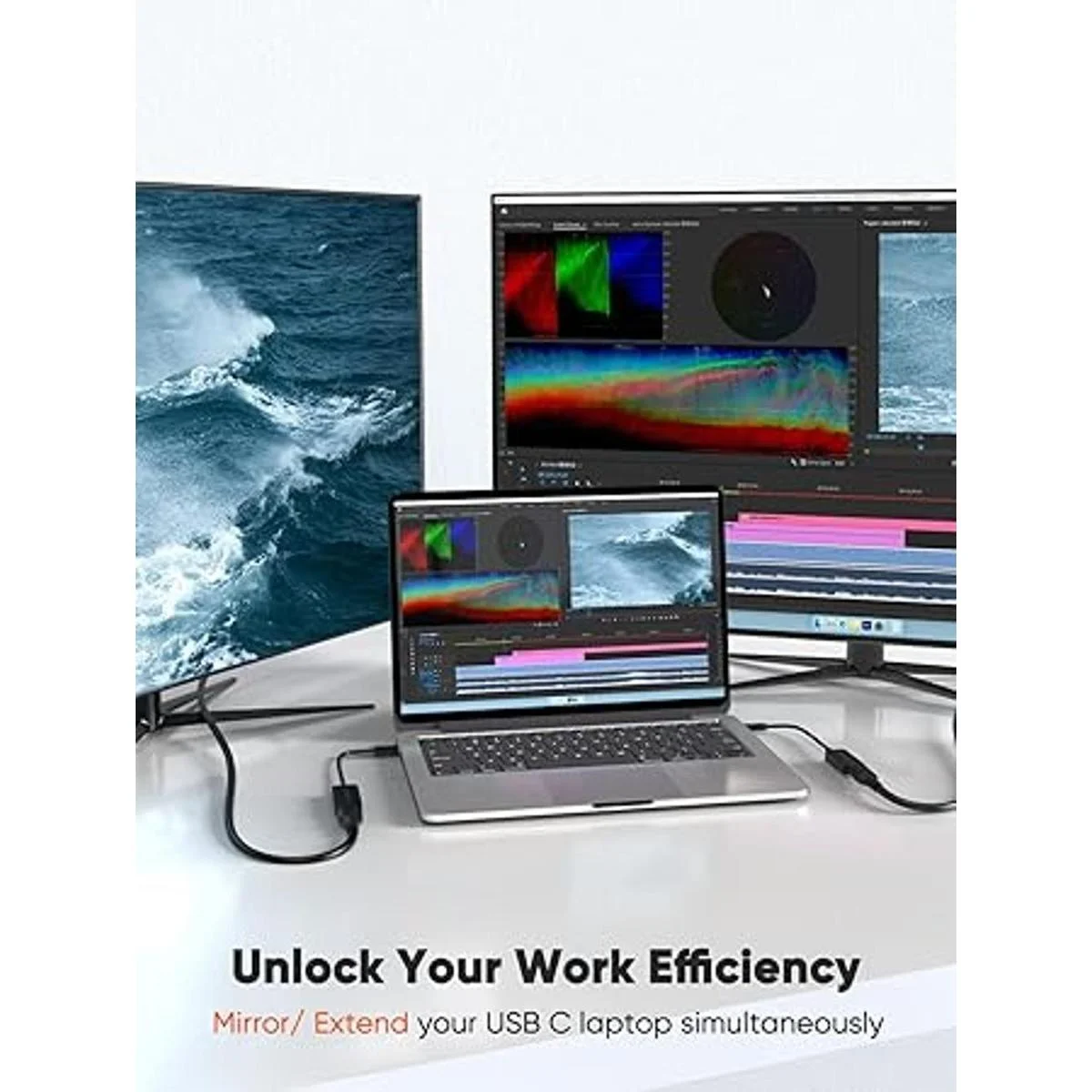 Resolución UHD 4K a 60Hz: el adaptador USB C a DP de CableCreation soporta resolución de hasta 4Kx2K60Hz. Puedes disfrutar de una imagen más clara en tu monitor externo o HDTV. Ten en cuenta que la MacBook 2015 de 12 pulgadas solo soporta hasta 4K a 30Hz. Este adaptador de puerto de pantalla a USB permite duplicar o extender la pantalla de tu portátil a la pantalla externa. Puedes añadir monitores externos duales con dos de este adaptador USB C a DP para disfrutar de diferentes imágenes
