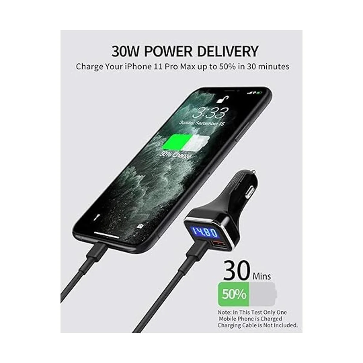 Adaptador USB C de cargador de coche con pantalla de voltaje, encendedor de cigarrillos de 30 W tipo C de carga rápida y carga rápida 3.0 PD y control de calidad, monitor de batería de medidor de voltios, compatible con iPhone 12 Galaxy Pixel