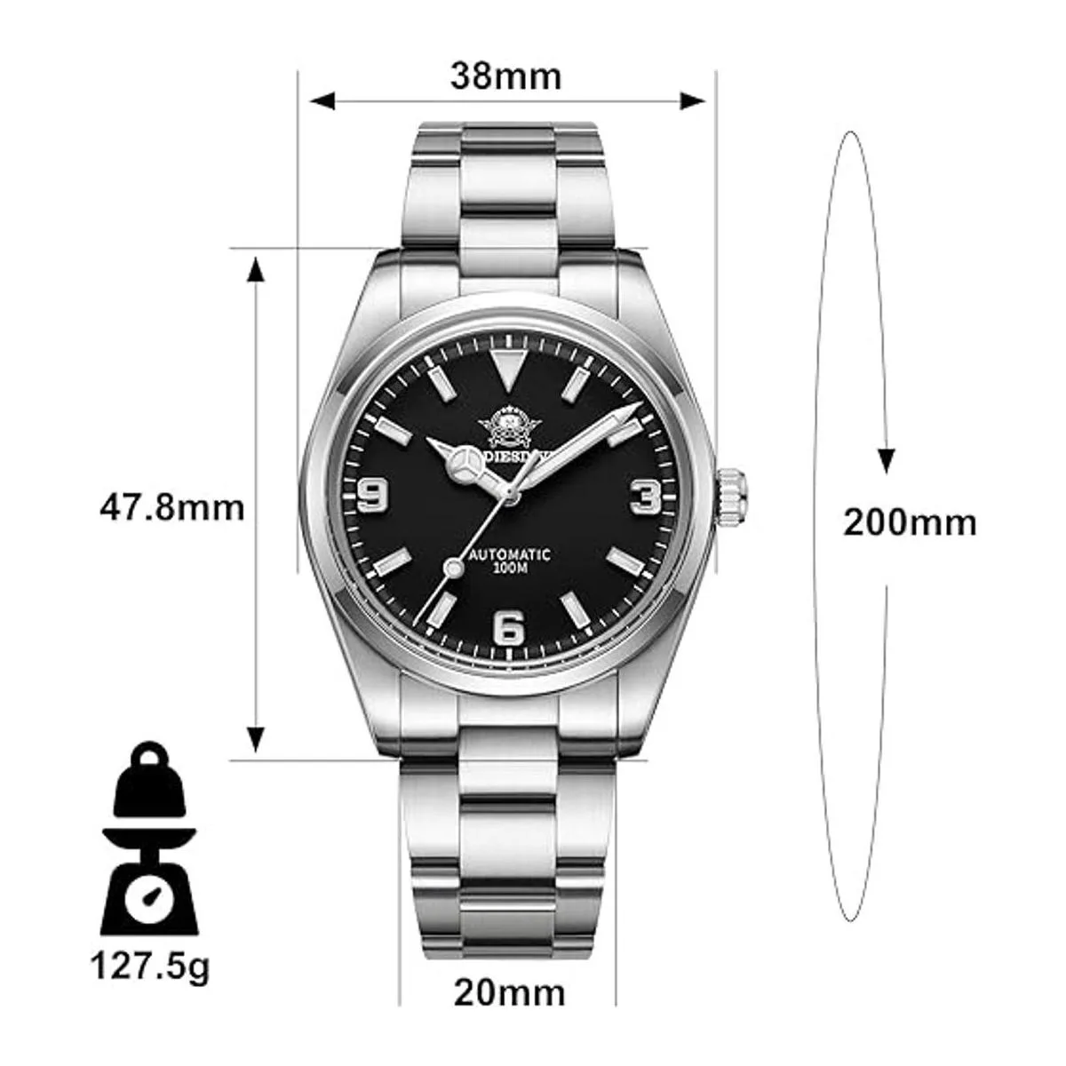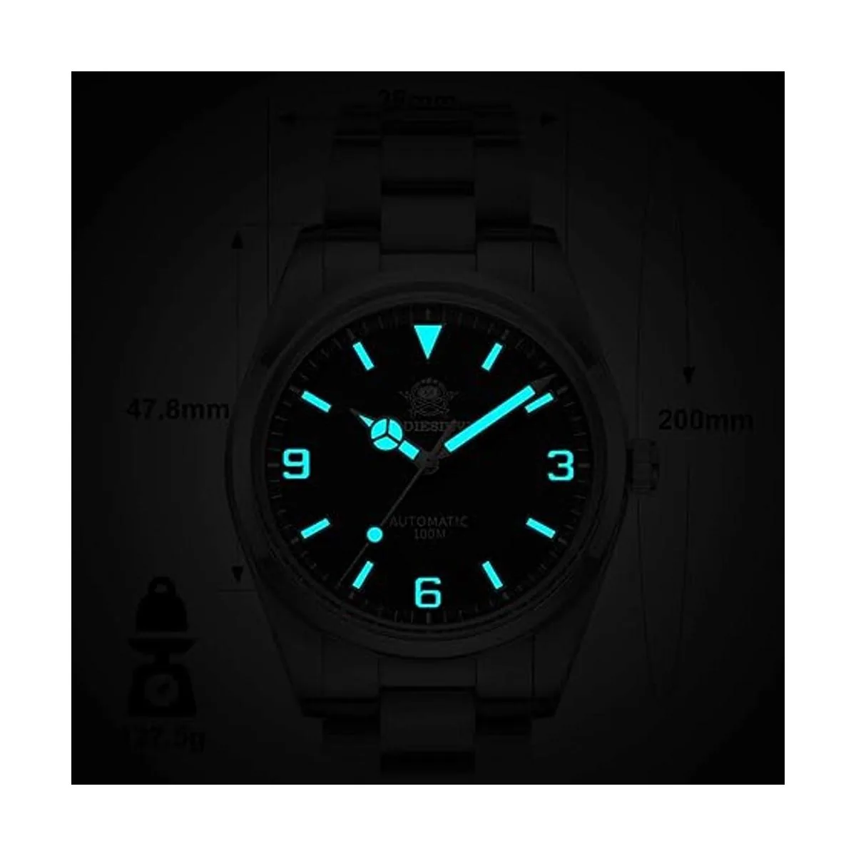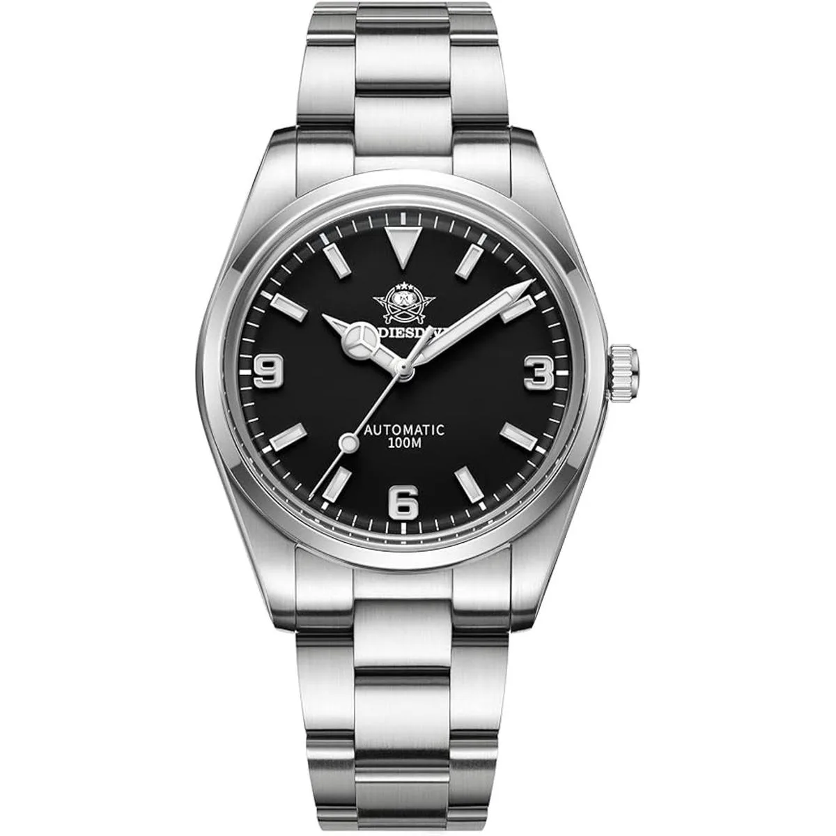 ADDIESDIVE 38mm Small Simple Dial Automatic Watch for Men and Women Steel Strap NH38A Black and Blue Dial AD2112