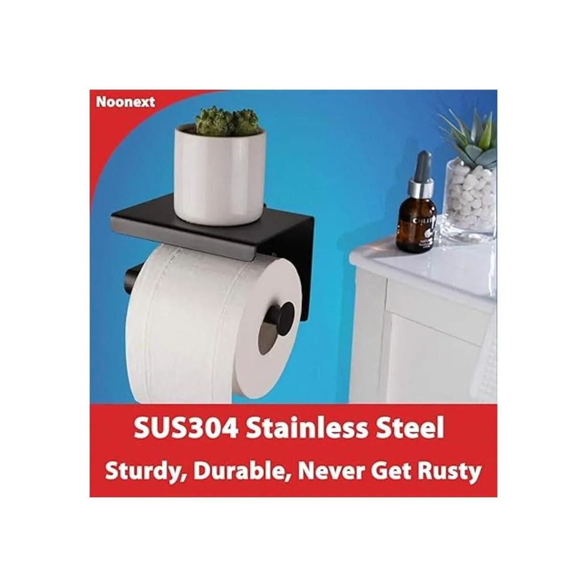 Adhesivo para papel higiénico negro mate, soporte para rollo de papel higiénico con estante, adhesivo 3M sin taladro o montado en la pared con tornillos para baño y cocina