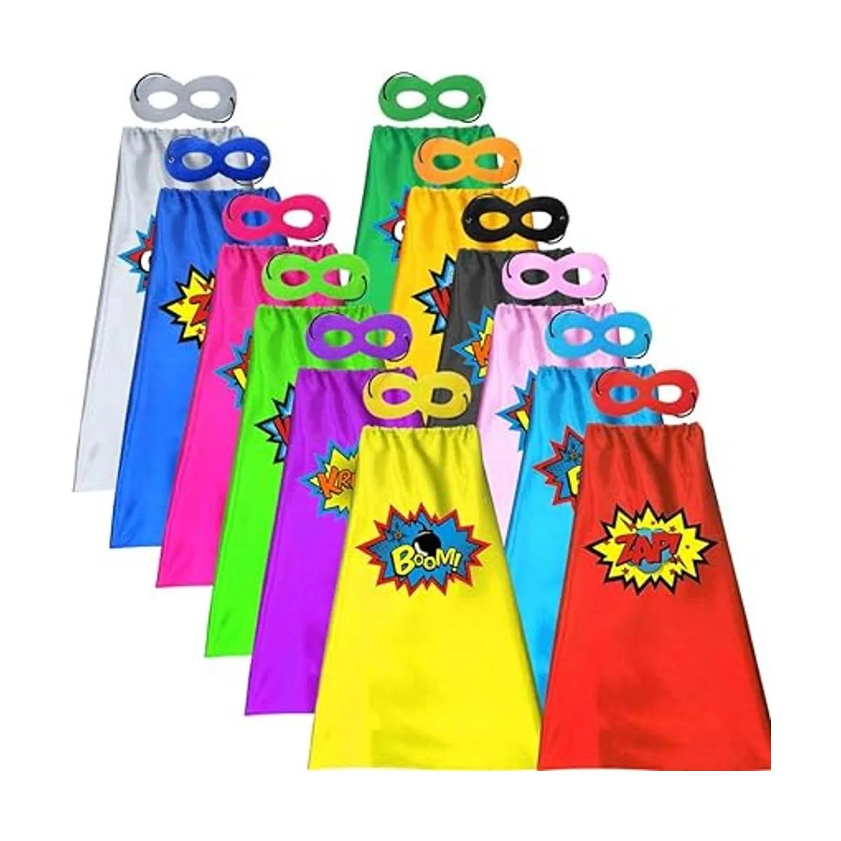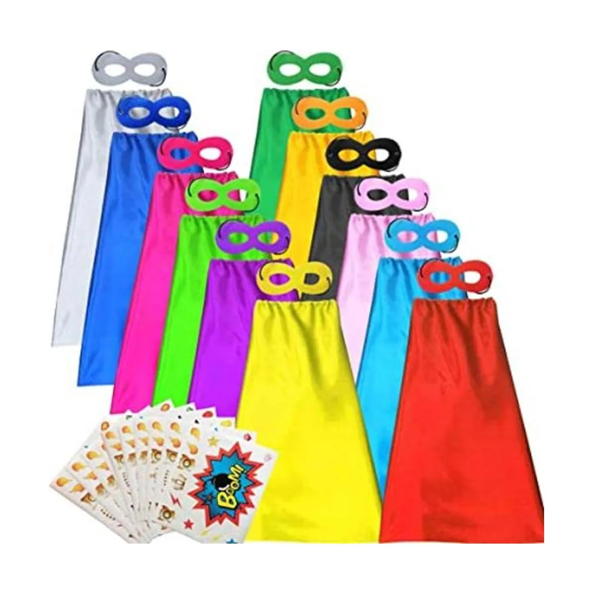 ADJOY 12 juegos de capas y máscaras de superhéroe para niños con calcomanías grandes de superhéroe, 12 colores mezclados