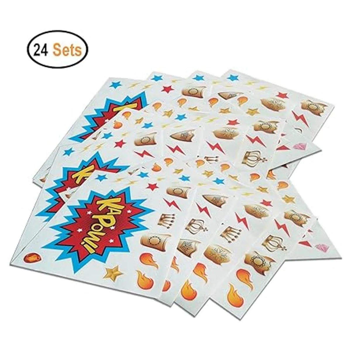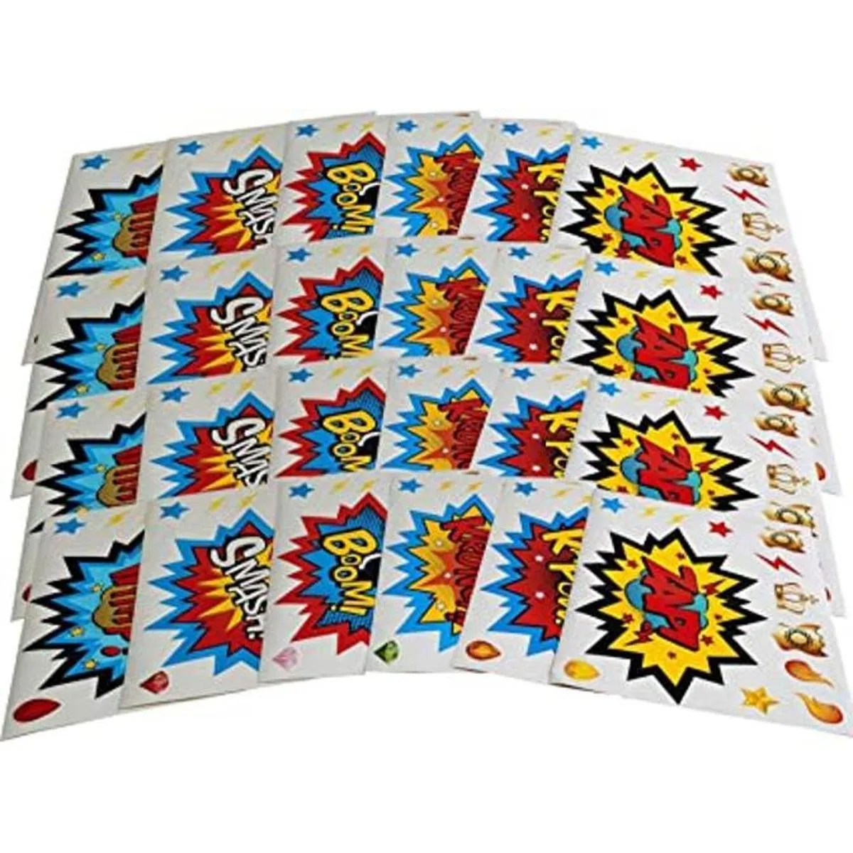 Incluye: 24 calcomanías de superhéroes grandes; y hay 288 calcomanías pequeñas alrededor.