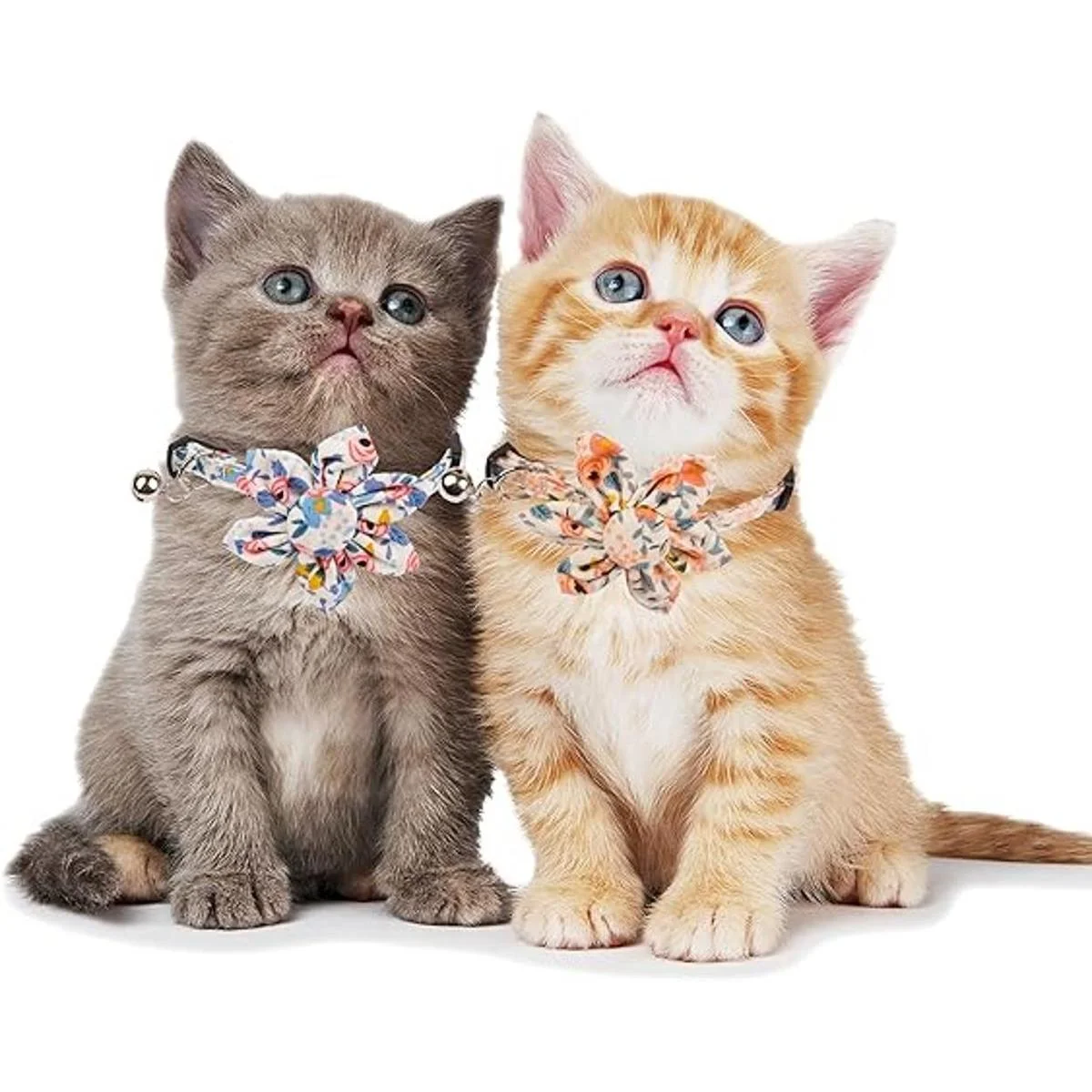 Collar de gato con campana y floral: la flor es extraíble con bandas elásticas. Campana con sonido melodioso, encontrarás a tu adorable gatito fácilmente.
