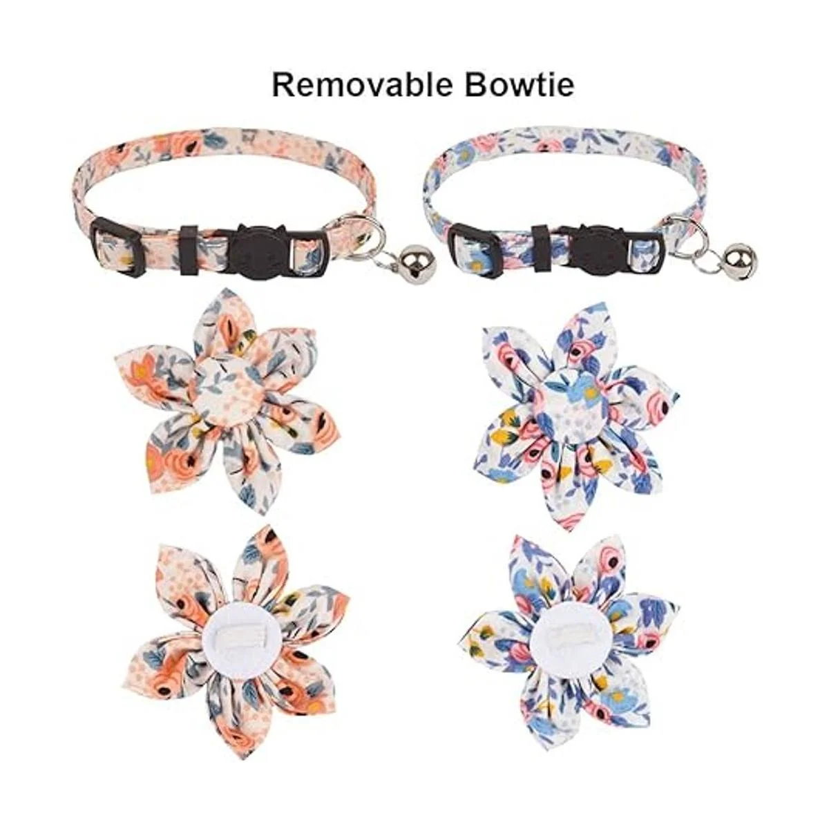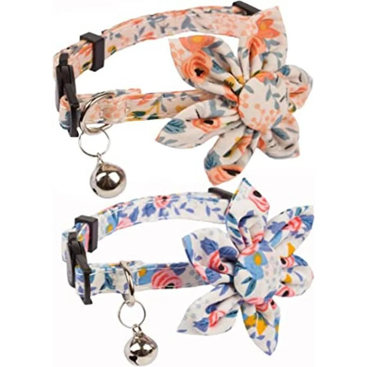 ADOGGYGO Breakaway Collar de gato con campanas, paquete de 2 collares de flores para gatos y niñas con collares ajustables florales extraíbles para gatos rosa y azul