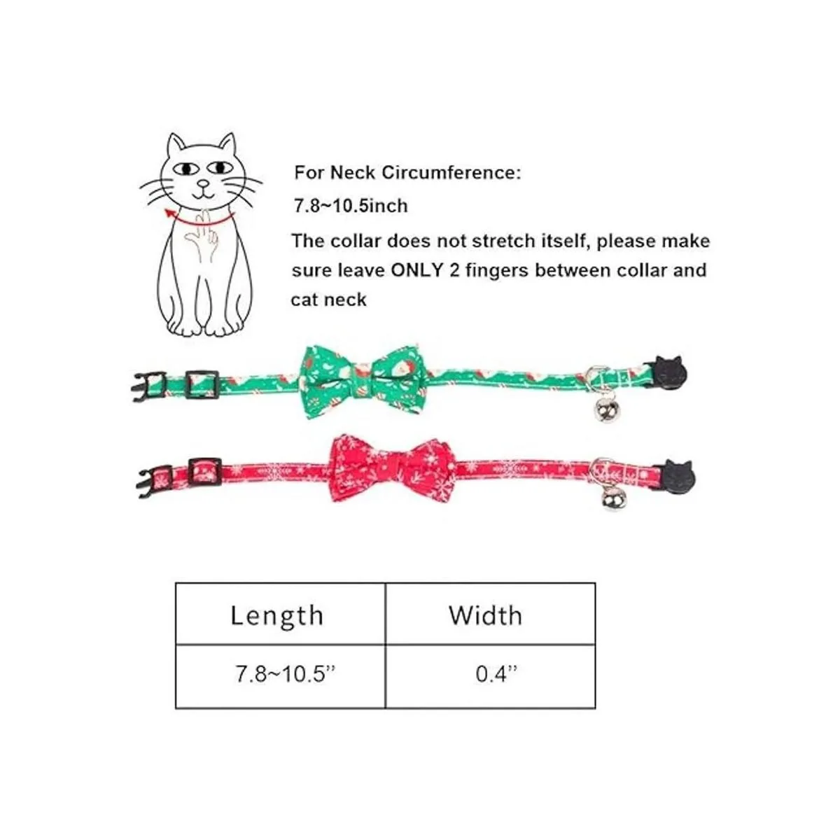 ADOGGYGO Collar de gato de Navidad con campana de corbatín, paquete de 2 collares de gatito con estampado de copo de nieve de Papá Noel con lazo extraíble para gatito gato rojo y verde3