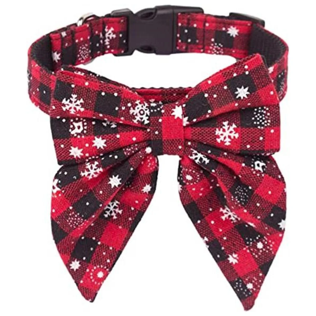 Collar de perro de Navidad: diseño clásico de cuadros rojos y negros con patrón de copo de nieve, lleno de ambiente navideño. Los bonitos collares de Navidad para perros hacen que tu mascota sea encantadora en el día de Navidad.