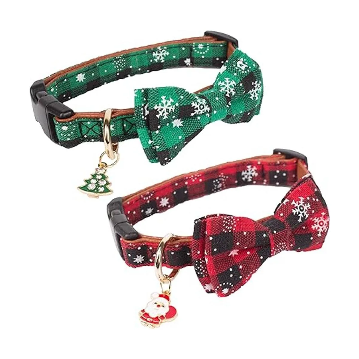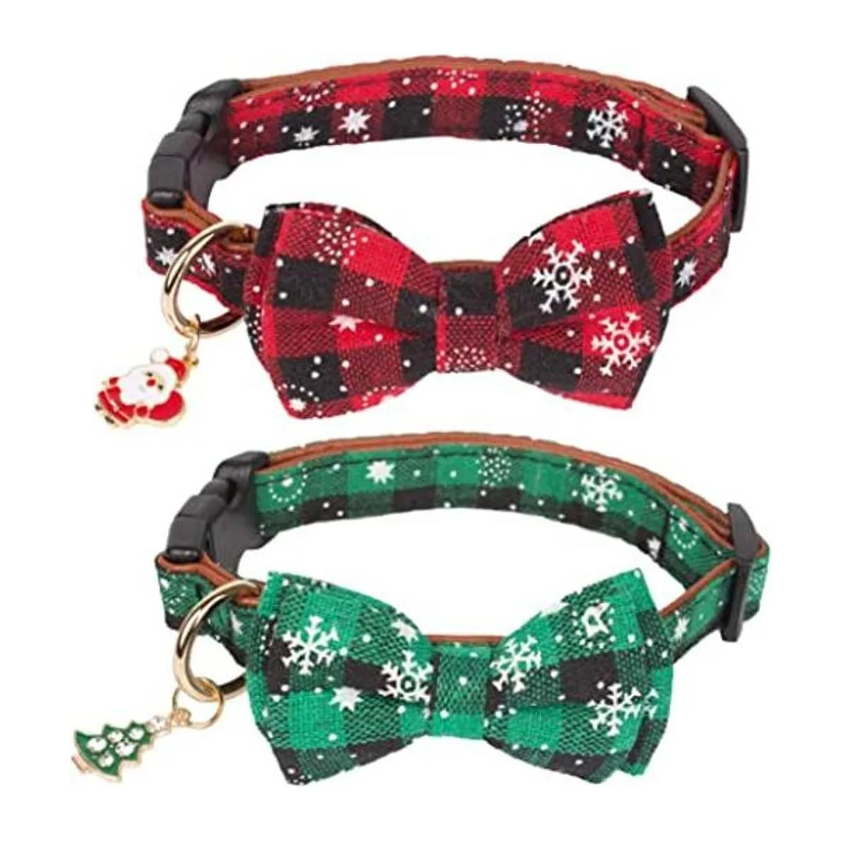 Paquete: 1 collar de perro de Navidad rojo, 1 collar verde para mascotas, un regalo genial para hacer que tu perro esté a la moda en el día de Navidad.