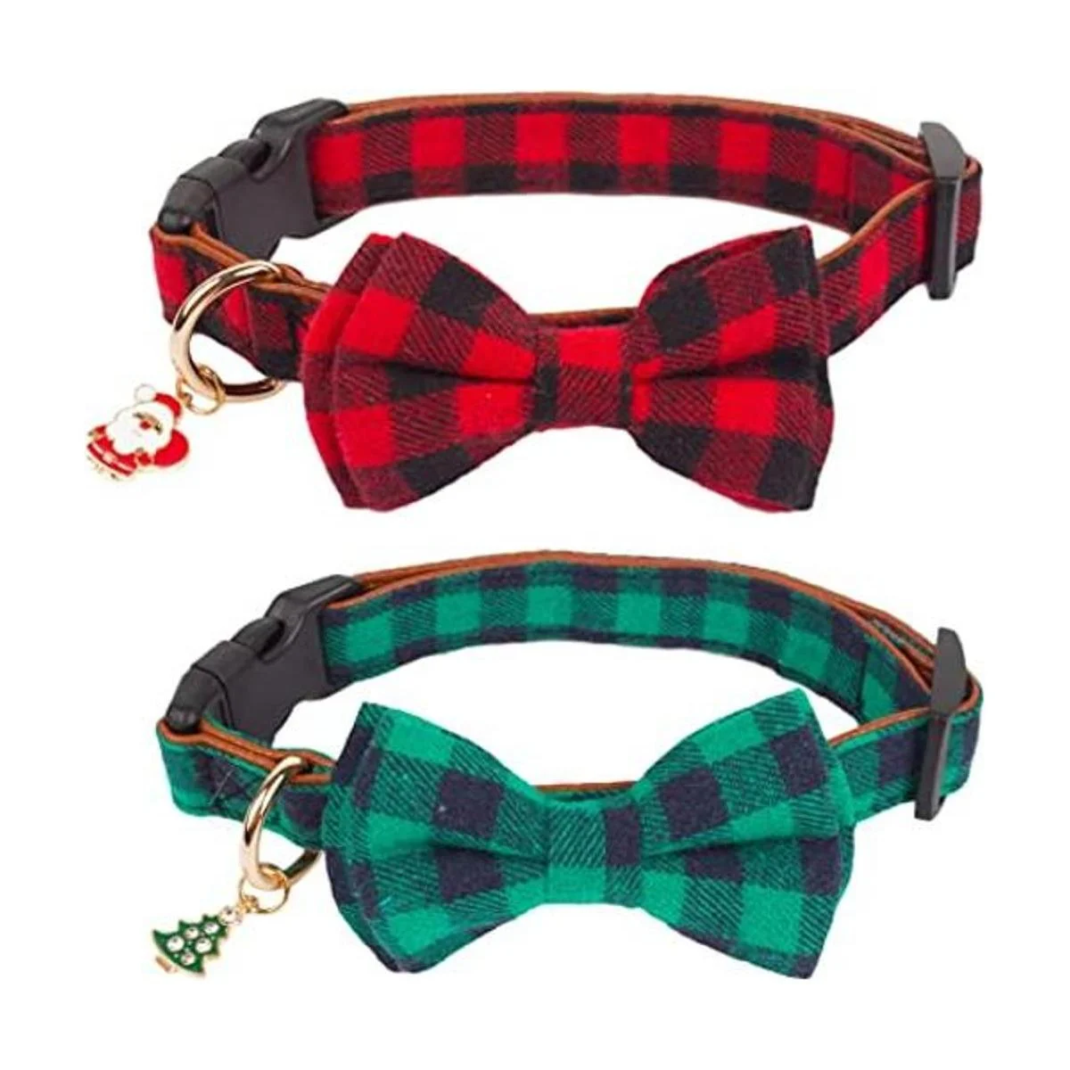 Paquete: 1 collar de perro de Navidad a cuadros rojos, 1 collar de Navidad a cuadros verdes, un regalo genial para hacer que tu perro esté a la moda en el día de Navidad.