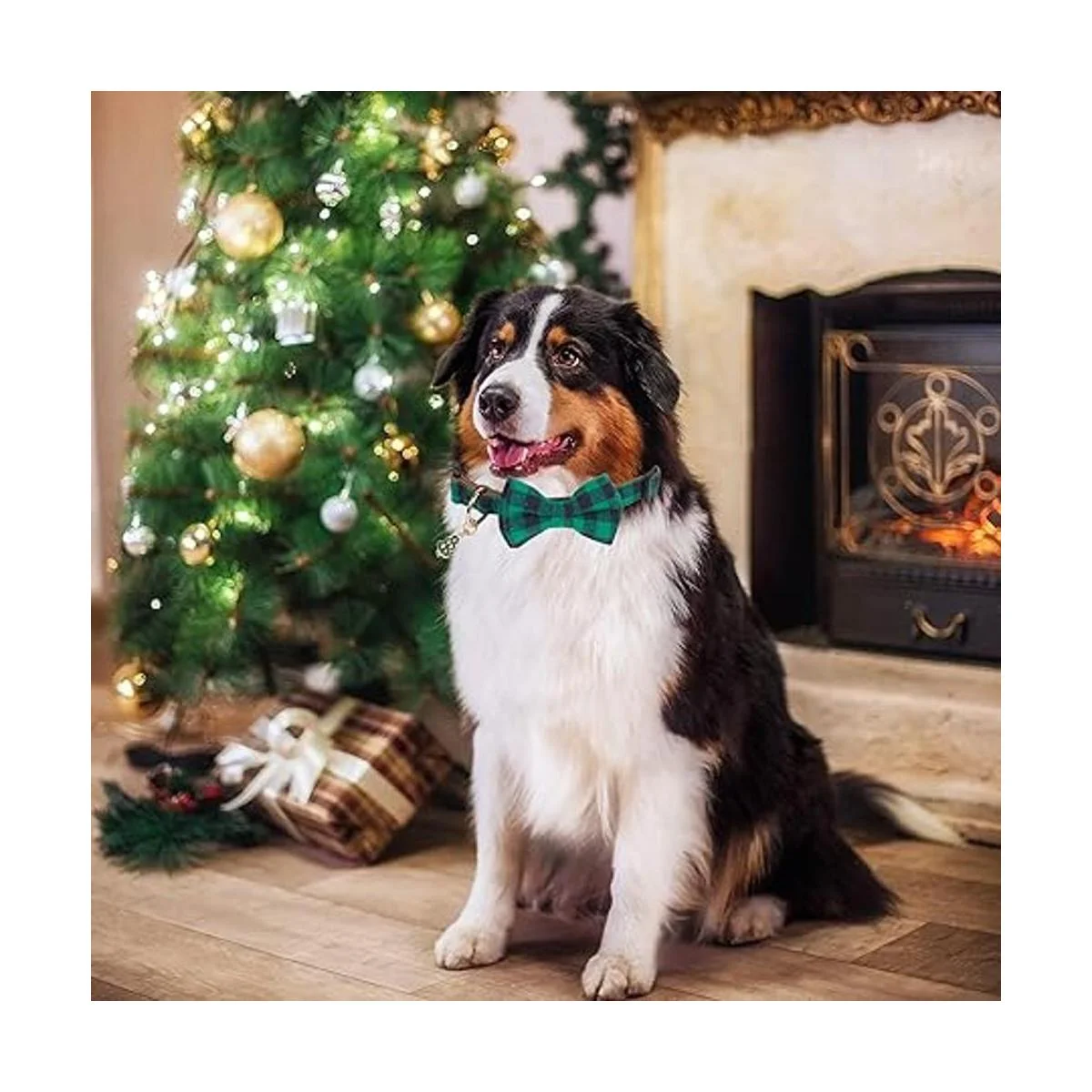 Collar de perro con corbatín: la bonita pajarita a cuadros es extraíble con bandas elásticas. El adorable abalorio de Navidad también es extraíble. Se puede quitar cuando se utiliza a diario.