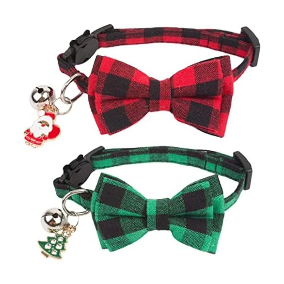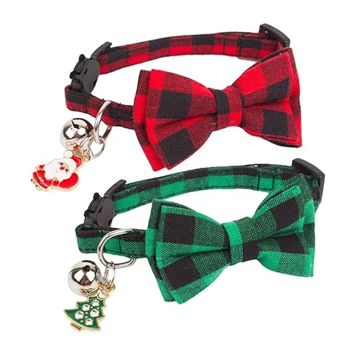 ADOGGYGO Collares de Navidad para gatos con bonita campana de lazo, paquete de 2 collares de gatito rojos y verdes a cuadros con collar de Navidad extraíble para gatos y gatitos rojo y verde1