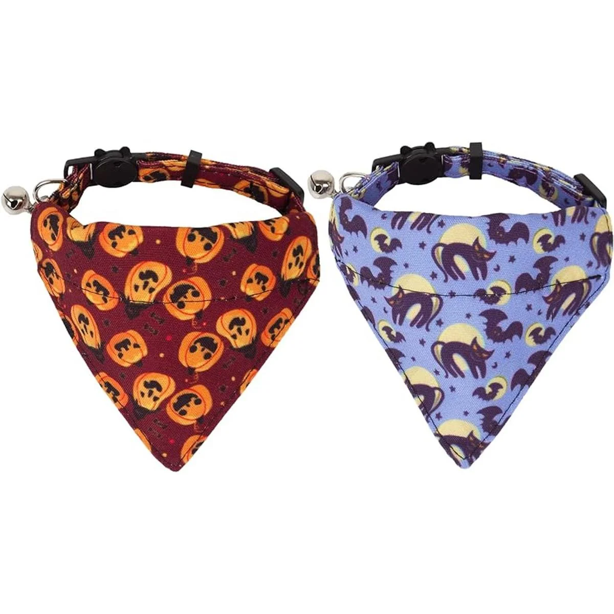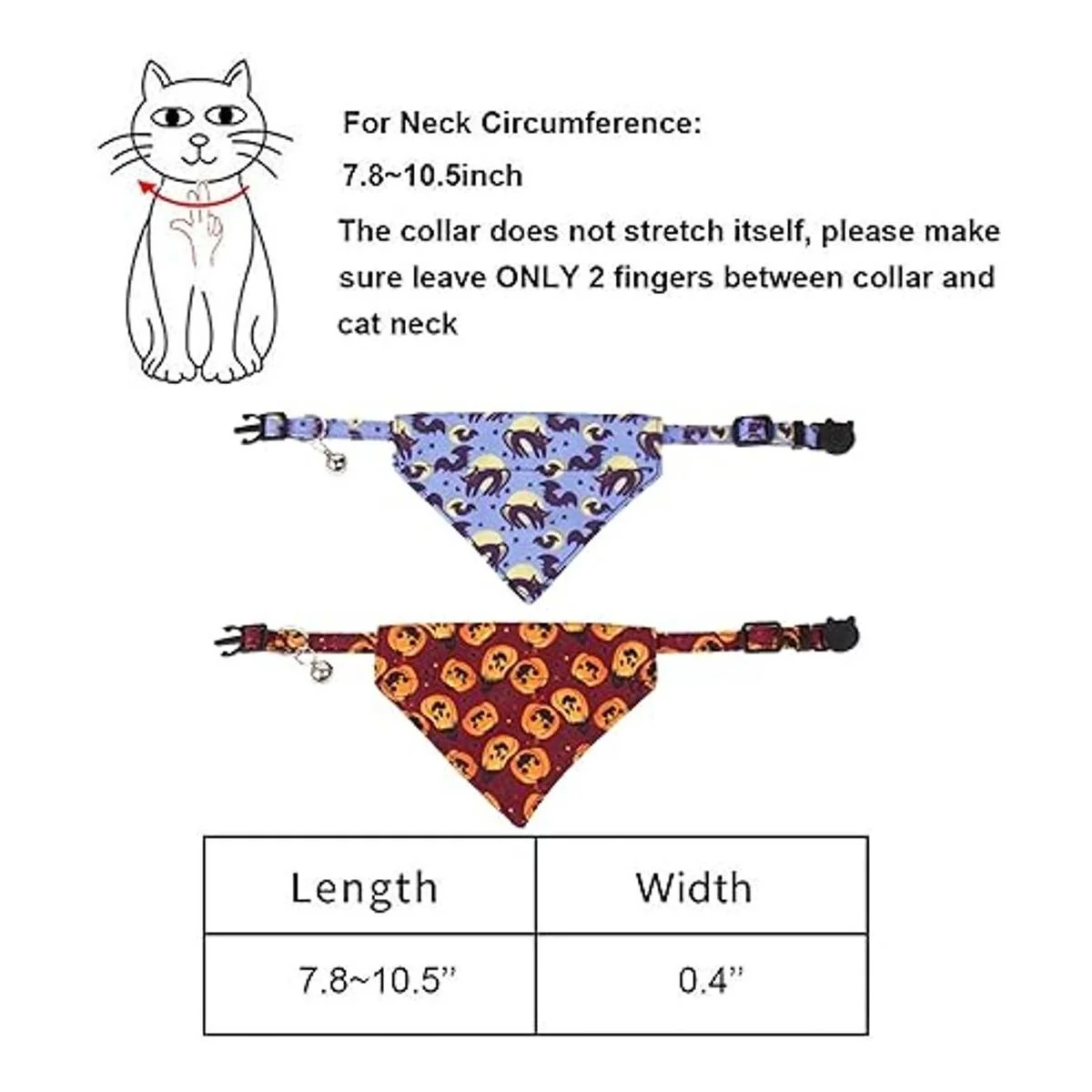 ADOGGYGO Collares para gatos de Halloween con campana, paquete de 2 collares ajustables para gatos con bandana extraíble, diseño de calabaza para gatos y gatitos
