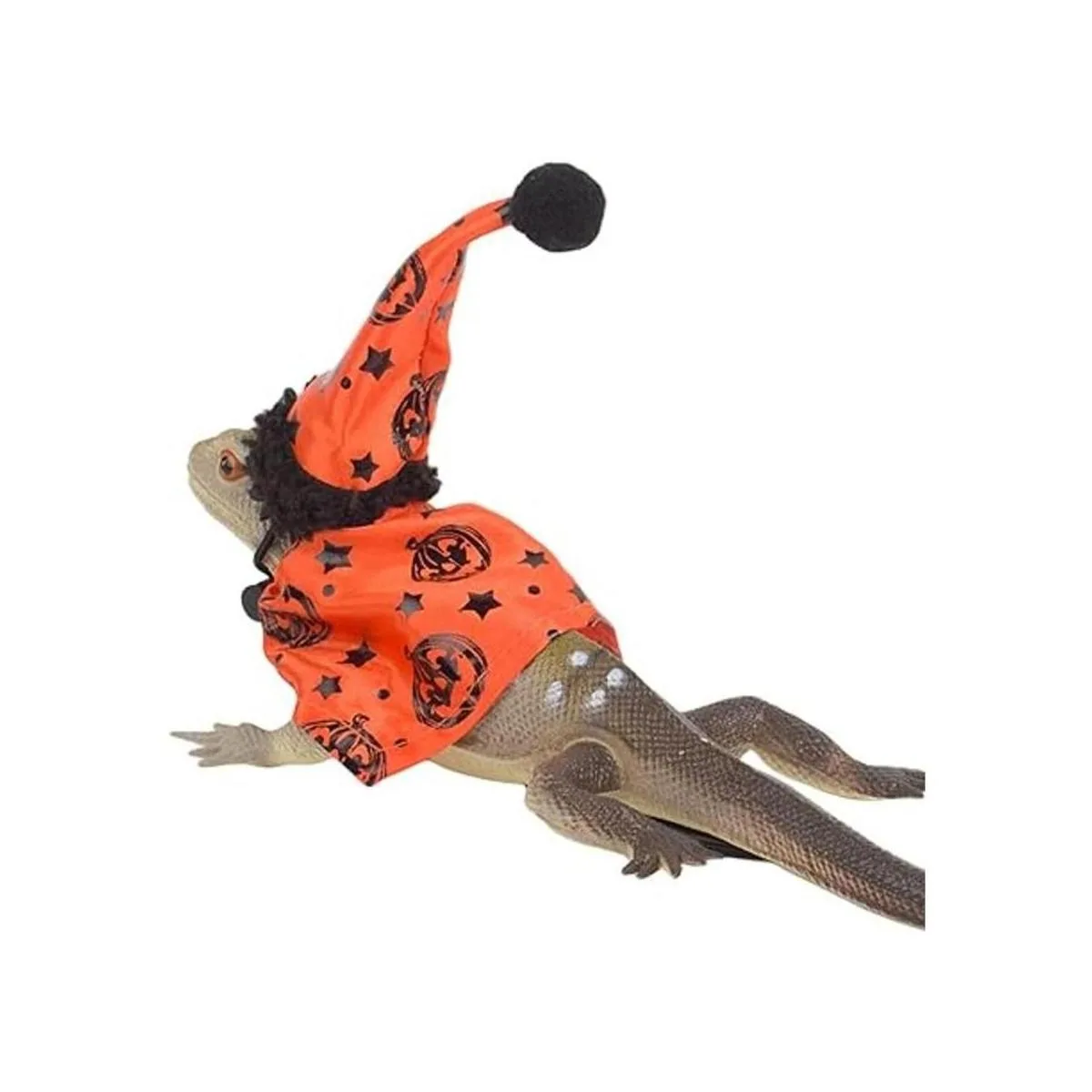 Disfraz de dragón barbudo: el bonito juego de gorro y capa de calabaza hará que tu reptil sea más encantador y moderno en el día de Halloween.