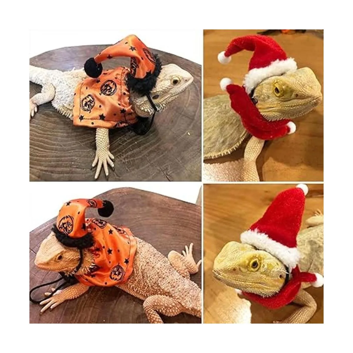 ADOGGYGO Conjunto de bufanda de sombrero de Halloween de dragón barbudo, capa de lagarto de Navidad, disfraz de festival de Navidad de animales pequeños