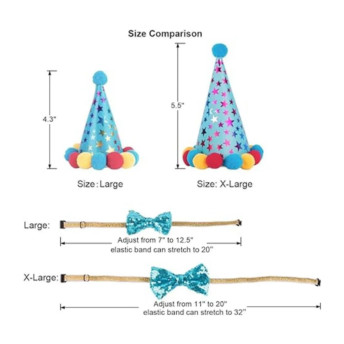 Según el consejo del cliente, añadimos la talla XL. El sombrero, la bufanda y el corbatín son más grandes que la talla L, la talla XL es más adecuada para perros medianos a grandes. La talla L es adecuada para perros pequeños a medianos.