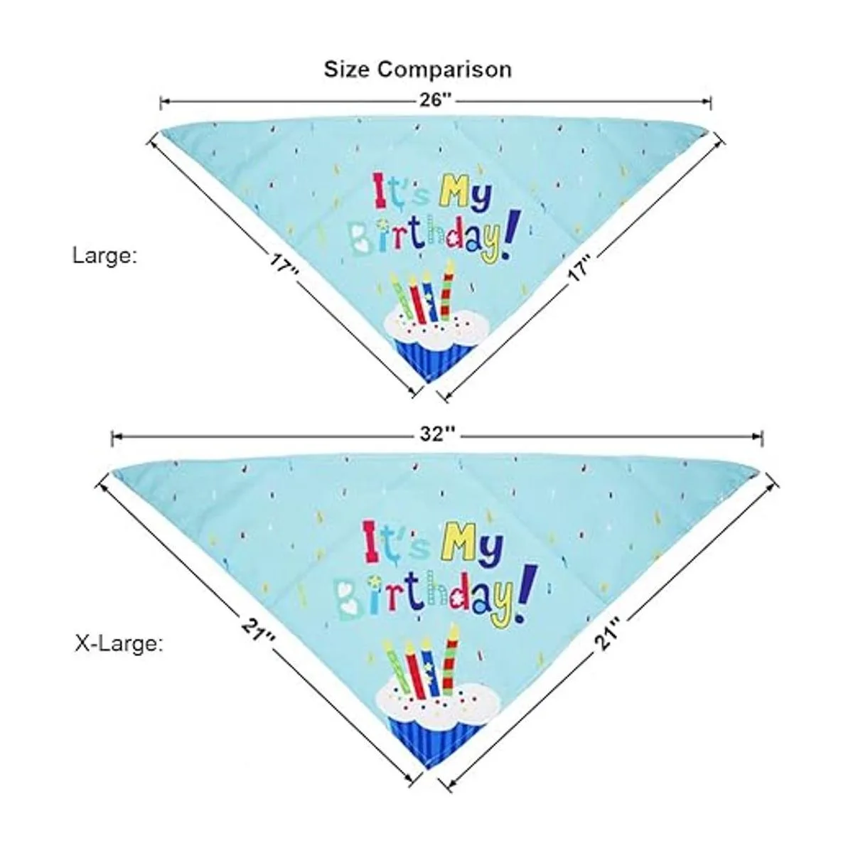 La bandana de cumpleaños para perro está hecha de tela suave y ligera, suave y cómoda de llevar. El tamaño es de 32 x 21 x 21 pulgadas, apto para cuello de menos de 28 pulgadas.